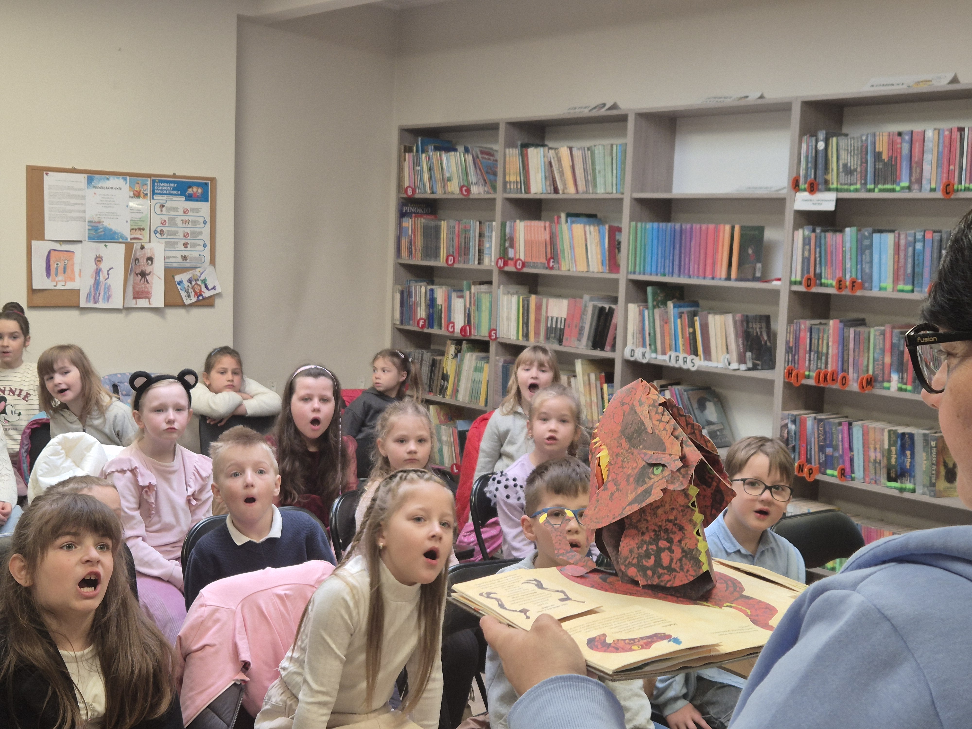 W naszej bibliotece odbywają się lekcje biblioteczne dla przedszkolaków oraz uczniów. Pani Marzenka wprowadza je w świat książek, rozwijając zainteresowania czytelnicze oraz uczy korzystania z zasobów biblioteki.