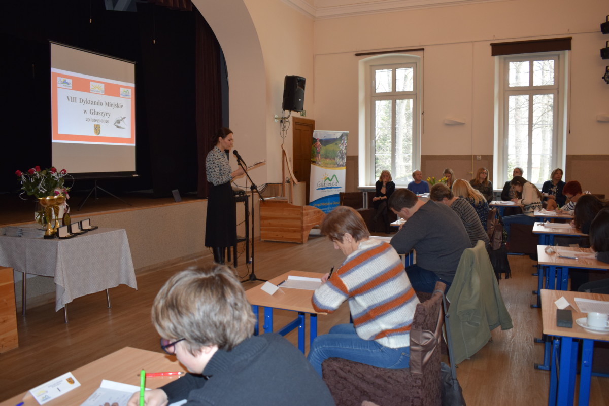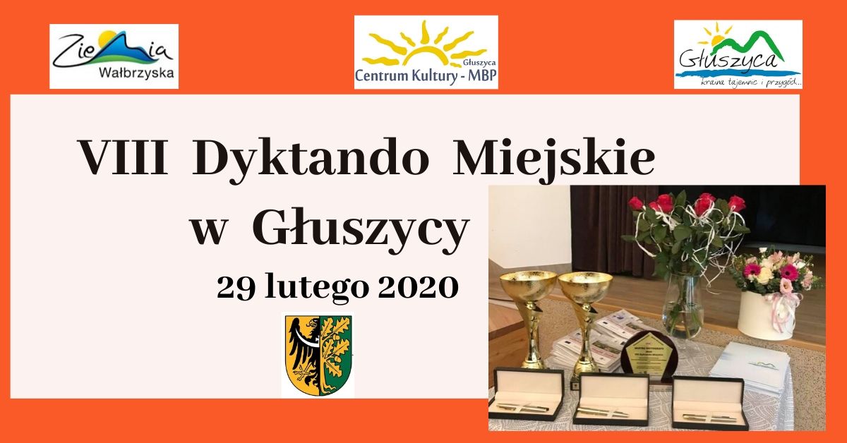 Uczestników dyktanda ciepłymi słowami przywitali: Sabina Jelewska, dyrektor Centrum Kultury – Miejskiej Biblioteki Publicznej w Głuszycy, Grzegorz Szymański, Wiceburmistrz Głuszycy, Iwona Frankowska Wicestarosta Powiatu Wałbrzyskiego oraz Renata Sokołowska, kierownik Miejskiej Biblioteki Publicznej. Tekst konkursowy VIII Dyktanda Miejskiego w Głuszycy przygotowała i osobiście odczytała uczestnikom legniczanka, absolwentka psychologii i lingwistyki stosowanej, powieściopisarka Kamila Mitek.