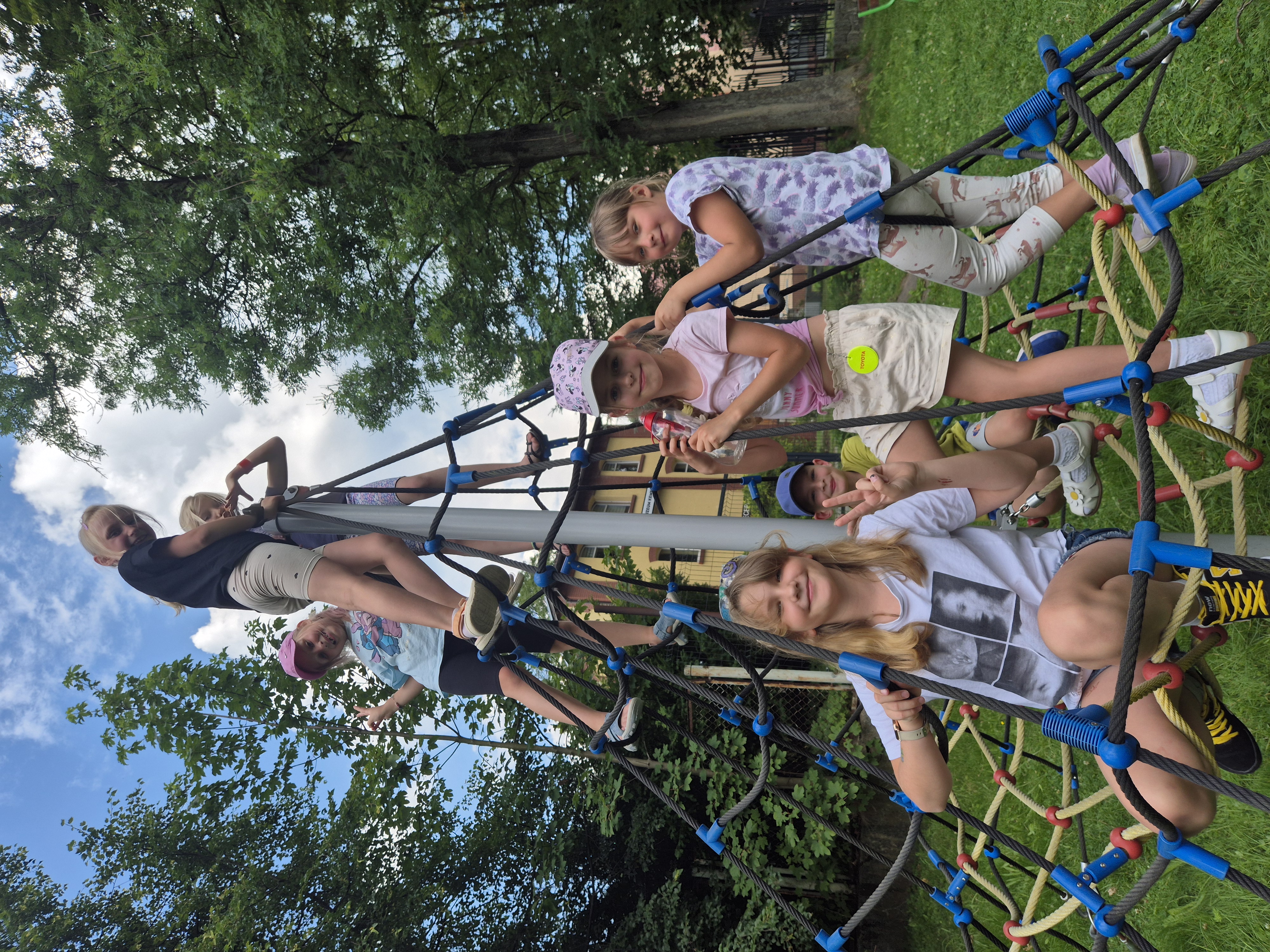 Dzieci odwiedziły Zielony Zakątek w Rzeszówku – gdzie poznały różnego rodzaju zioła i malowały herbatami ziołowymi. W Manufakturze Szkła „Barbara” w Polanicy Zdroju dekorowały swoje własne świeczniki. W kolejnych dniach pojechały na Farmę Waliszów w Bystrzycy Kłodzkiej oraz do Kopalni Uranu w Kletnie. Nie zabrakło również zabaw w wodzie na „Delfinku” w Głuszycy i gier terenowych w Gigantei – Karkonowskim Parku Ducha Gór w Karpaczu i Zamku w Międzylesiu, gdzie poszukiwały ukrytego skarbu. Oraz warsztatów czekoladowych z suchym lodem z Koza Lab. Na zakończenie pierwszego turnusu półkolonii razem z Panią Dyrektor Aleksandrą Pawlak dzieci zatańczyły układ taneczny, którego uczyły się każdego dnia robiąc przy tym niespodziankę dla swoich rodziców.