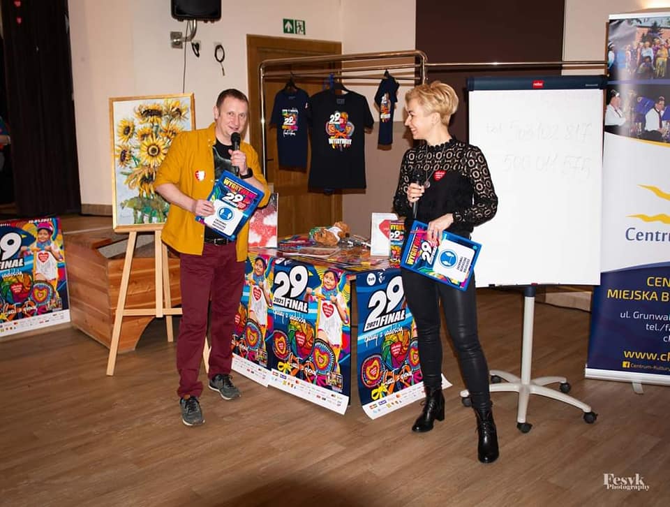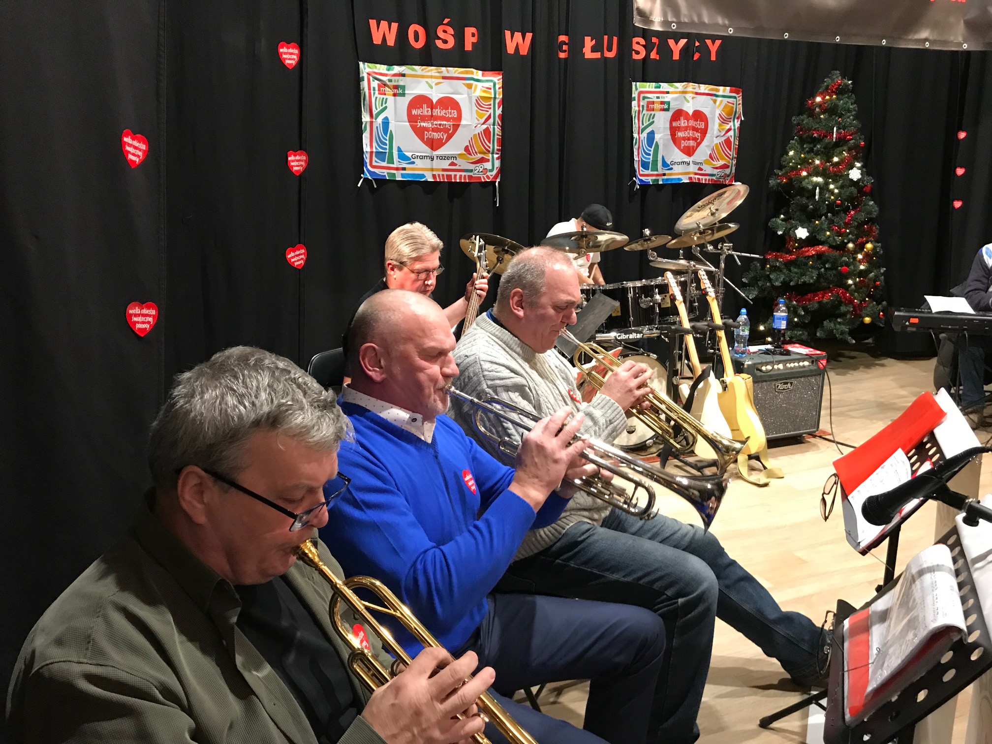 Serdecznie dziękujemy za wytrwałość, mimo mroźnej aury, wszystkim wolontariuszom, którymi w czasie tegorocznego finału byli: Burmistrz Głuszycy Roman Głód wraz z żoną Iwetą, a także Jakub Stawiński, Daria i Lena Stępień, Martyna i Dawid Jerzyk, Blanka Knychała, Piotr i Magdalena Kandefer. Gorące podziękowania kierujemy do zespołów Grzybek Band i Paranoja, które z sercem i radością zagrały w Wielkiej Orkiestrze dla głuszyczan i nie tylko. Ogromne podziękowania dla Tomasza Szachty, Wojtka Romana, Michała Mondrego, Oskara Niczyporuka, którzy zajęli się obsługą techniczną finału i przygotowaniem transmisji online. Jak zawsze nie zawiedli pracownicy Centrum Kultury- Miejskiej Biblioteki Publicznej w Głuszycy na czele z szefową sztabu Klaudią Chętkowską. Serdeczne podziękowania dla Renaty Sokołowskiej, Marzeny Nygii z córkami Karoliną i Weroniką, Renaty Solińskiej i Marty Czepil.