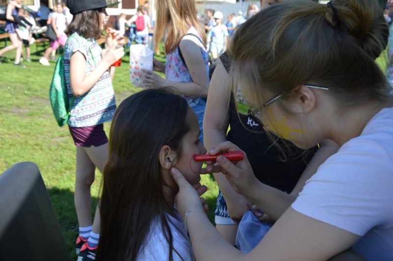 Boisko sportowe w Głuszycy zamieniło się w olbrzymi plac zabaw, które poprowadzili animatorzy z Centrum Animacji i Rekreacji Karolandia. Na dzieci czekały także zabawy na dmuchanym placu zabaw, a także stoisko z kolorowymi warkoczykami i malowaniem buziek oraz słodki poczęstunek. Panie seniorki z Klubu Seniorów Relaks swoim rękodziełem i otwartym sercem wsparły zbiórkę publiczną „Dla Marysi” i zachęcały przybyłe dzieci do pomocy chorej dziewczynce.