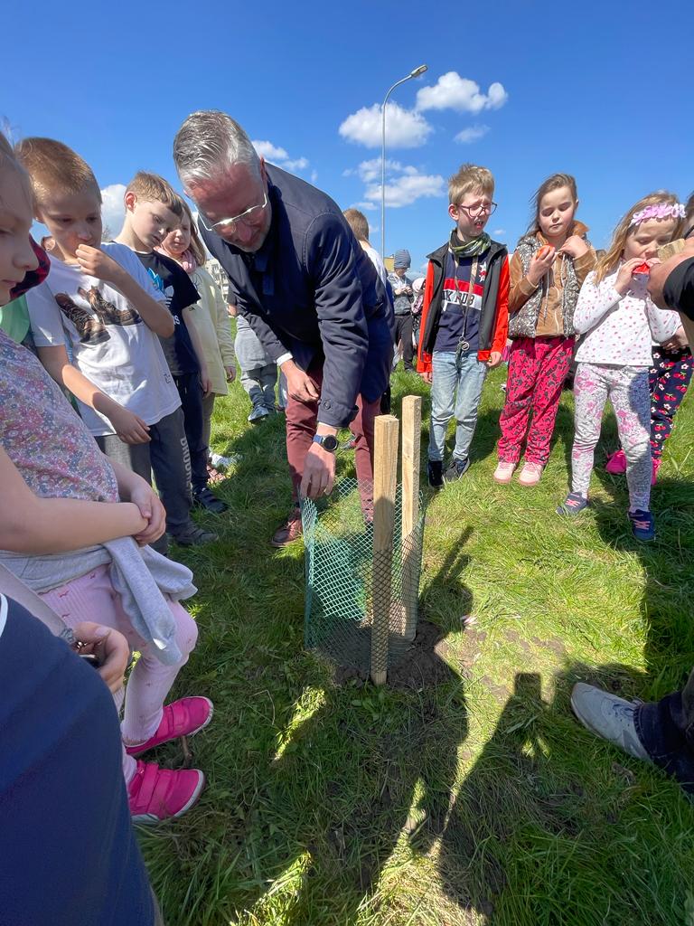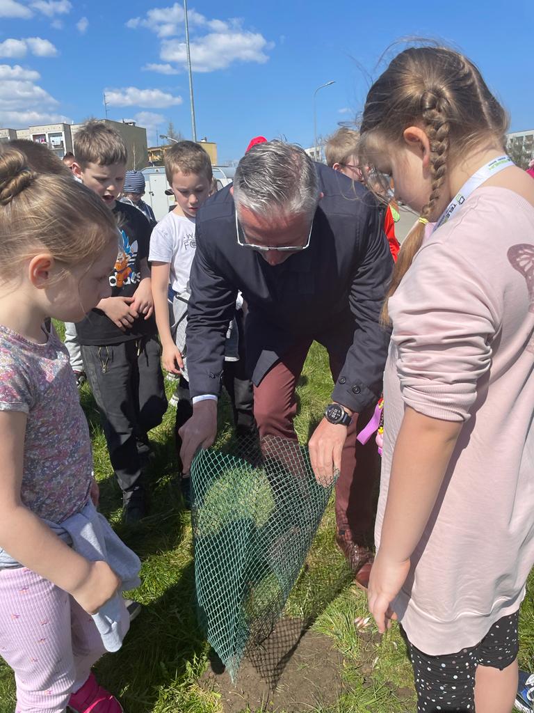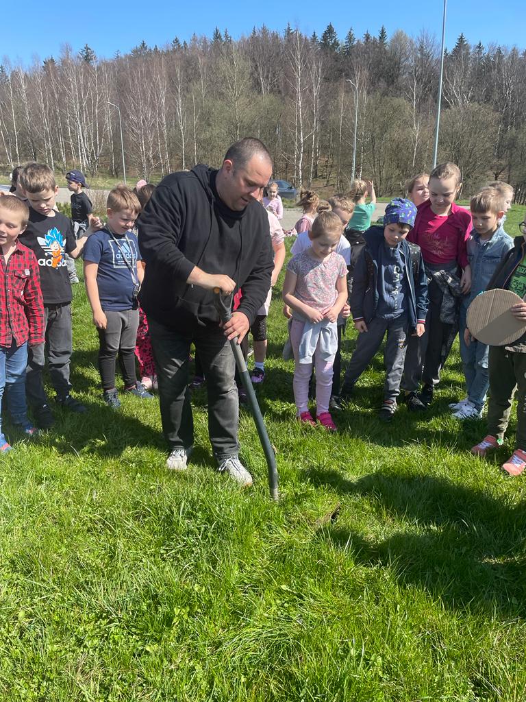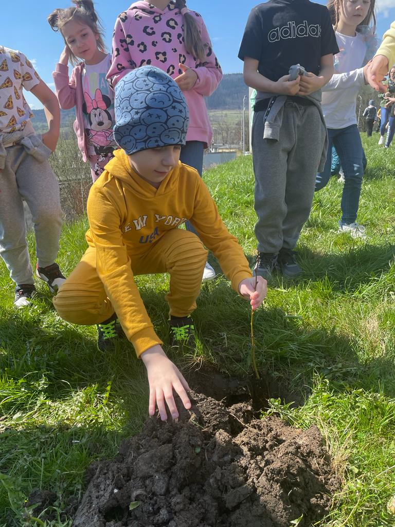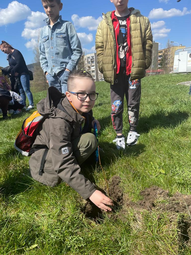 Po wykładzie dzieci wraz z Burmistrzem Głuszycy Romanem Głodem oraz Grzegorzem i Eweliną Borensztajn posadziły sadzonki lipy na terenie Centrum Przesiadkowego w Głuszycy w myśl hasła Dnia Ziemi – „Zainwestuj w naszą planetę” obchodzonego 22 kwietnia na całym świecie.