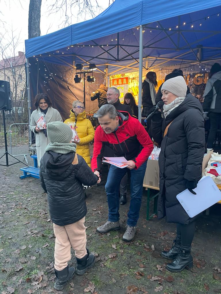 Słodkimi upominkami i dyplomami nagrodzeni zostali wszyscy uczestnicy konkursu plastycznego „Gwiazdka dla Seniora”, a było ich prawie 60-u. Wyróżnienia za najpiękniejsze kartki świąteczne trafiły do 15-u autorów prac, a byli to: Joanna Piątek, Emilian Morawiec, Zofia Łuszczyk, Milena Okulska, Dominik Strasz, Michalina Bryła, Maja Golonka, Michalina Dylak, Pola Marcinkowska, Marcelina Burchardt, Nikola Marcinkowska, Hanna Bujak, Dominika Petnet, Lena Włodarczyk, Gabriela Wojciechowska.