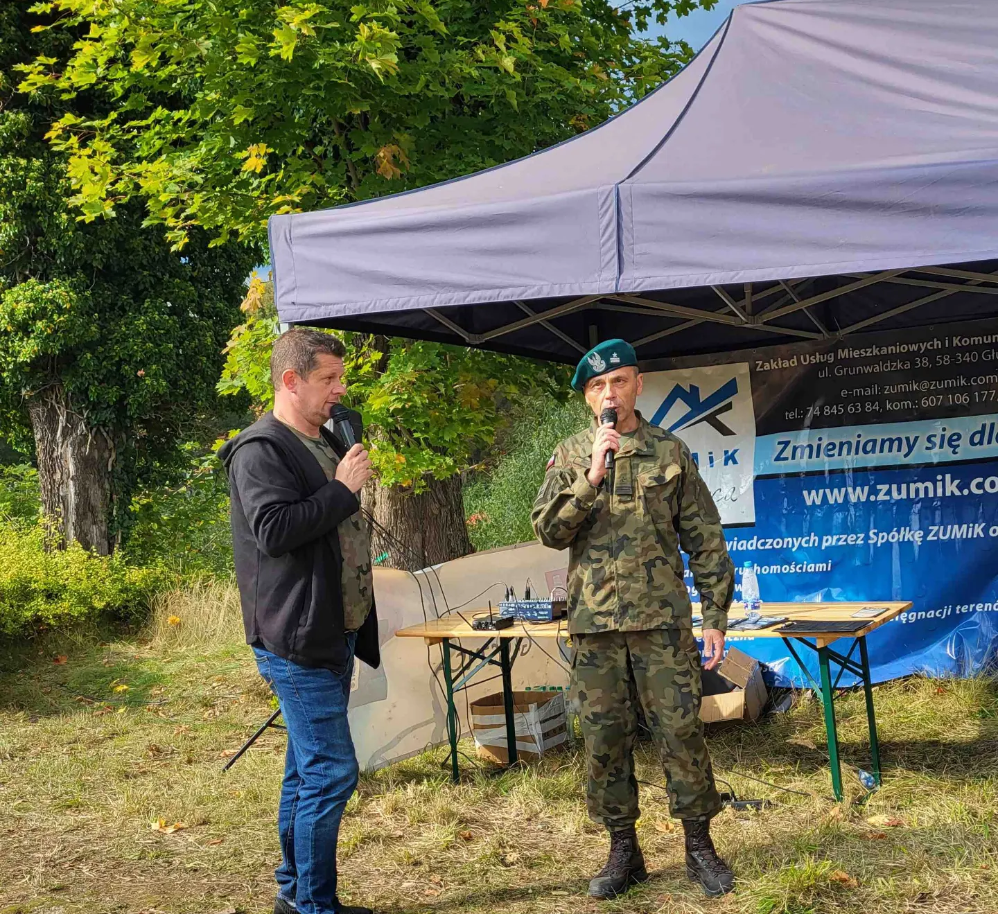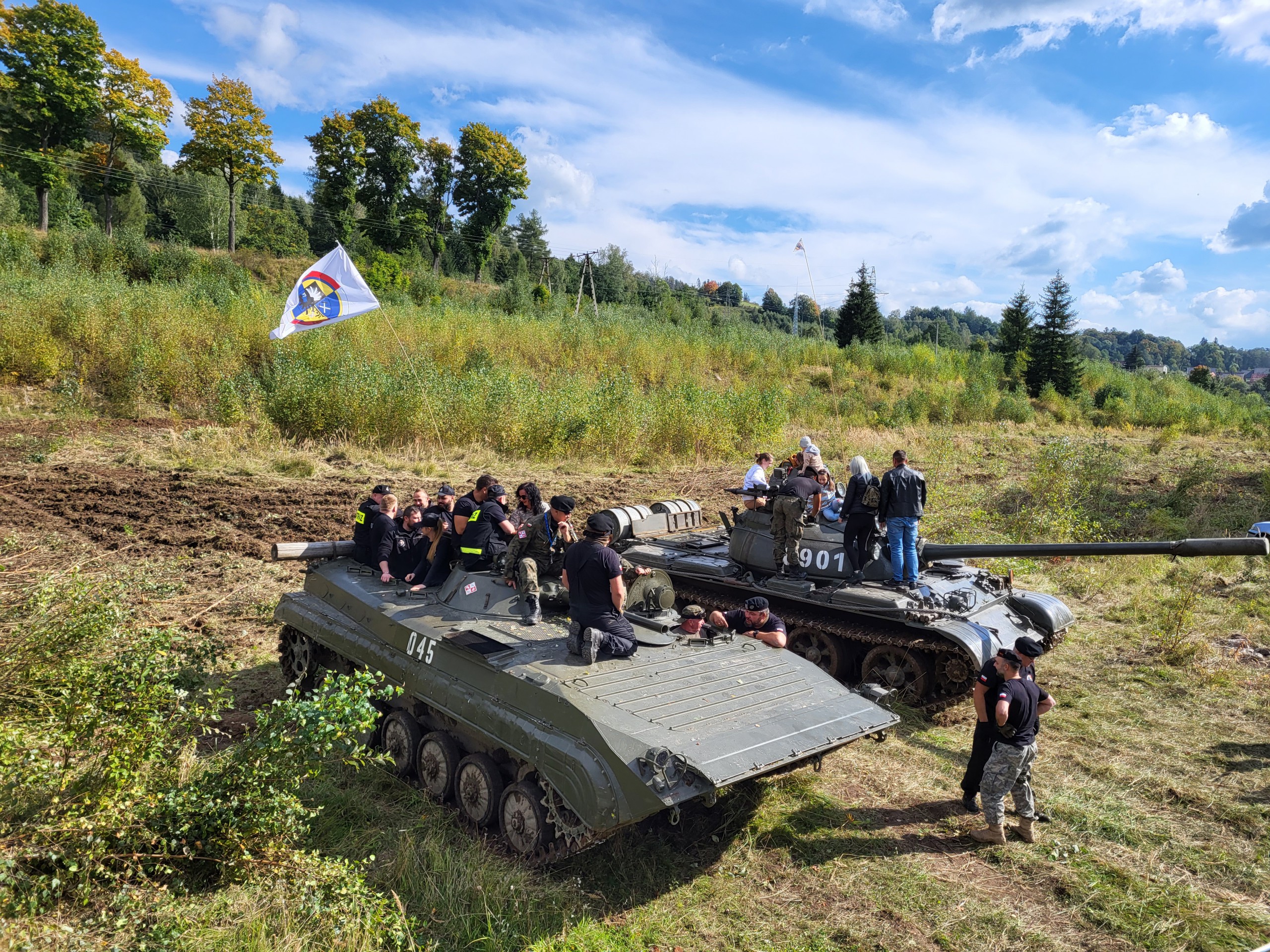 Organizatorem przedsięwzięcia była Fundacja Szlakiem Riese prowadzona przez Ewelinę i Grzegorza Borensztajn, a partnerem wydarzenia gmina Głuszyca. Na zaproszenie Fundacji do Głuszycy przyjechał sprzęt wojskowy, który znajduje się w zasobach Garnizonu Górnośląskiego – Śląskiej Fundacji Pasjonatów Techniki Militarnej. Grupa, dzisiaj licząca ponad 20 osób, została powołana do życia przez ludzi, dla których technika militarna to nie tylko pasja, ale przede wszystkim styl życia. Do Głuszycy przywieźli m.in. czołg T-55, PTS oraz BWP-1. O tym jak każdy z pojazdów zachowuje się w terenie mogli zobaczyć ci, którzy przybyli na piknik. Co więcej, każdy chętny mógł się nimi przejechać. – Nie chcieliśmy, aby te pojazdy wyłącznie stały. Naszym celem było sprowadzenie takiego sprzętu, którym mieszkańcy i goście mogliby się przejechać – podkreślali zgodnie organizatorzy Ewelina i Grzegorz Borensztajn z Fundacji Szlakiem Riese oraz Marek Pilarek z Garnizonu Górnośląskiego. Przejazdy wojskowym sprzętem odbywały się na terenie po byłych zakładach bawełnianych ZPB PIAST nr 1. Kilkadziesiąt metrów niżej znajdowały się stoiska różnych formacji mundurowych, które przestawiały specyfikę swoich organizacji. Byli m.in. strażacy, policja, wojsko oraz różnego rodzaju grupy strzeleckie i miłośnicy militariów. Nie zabrakło także widowiskowego pokazu umiejętności pracy psa z grupy poszukiwawczej, który zaprezentował m.in. jak sprawnie porusza się po drabinie. Największą niespodzianką podczas wydarzenia była jednak realizacja marzenia chorego Maksymiliana, który porusza się na wózku przy pomocy drugiej osoby. Nastolatek bardzo interesuje się militariami, a zwłaszcza pojazdami wojskowymi. Niestety, nigdy nie będzie mógł zostać czołgistą, o czym tak bardzo marzył. Dopadła go bowiem choroba Niemanna-Picka typu C . Jest nieuleczalną chorobą genetyczną, która powoduje u Maksa problemy z równowagą, napięciem mięśni oraz ruchami precyzyjnymi kończyn, jak również wywołuje u niego kłopoty z pamięcią i koncentracją. Trudności ma także z mówieniem i przełykaniem. Obecnie, aż 21 państw UE leczy chorych na NPC lekiem Miglustat, który opóźnia i łagodzi objawy choroby. Niestety w Polsce leczenie NPC nie jest objęte refundacją, a koszt miesięczny to 15 tysięcy złotych. Chłopiec zawsze marzył, aby przejechać się czołgiem i w sobotę udało mu się to zrealizować. Członkowie Garnizonu Górnośląskiego zdjęli Maxa z wózka i zabrali na czołg. Razem z chłopcem zrobili honorowe dwa okrążenia, którym towarzyszył gromki aplauz wszystkich gości. Nie mniejsze brawa otrzymali pomysłodawcy budowy muzeum pojazdów militarnych, które już za około rok powinno być otwarte w Głuszycy, a o czym zakomunikowali podczas pikniku. Jak zapowiadają Ewelina i Grzegorz Borensztajn była to pierwsza, ale na pewno nie ostatnia edycja imprezy militarnej w Głuszycy.