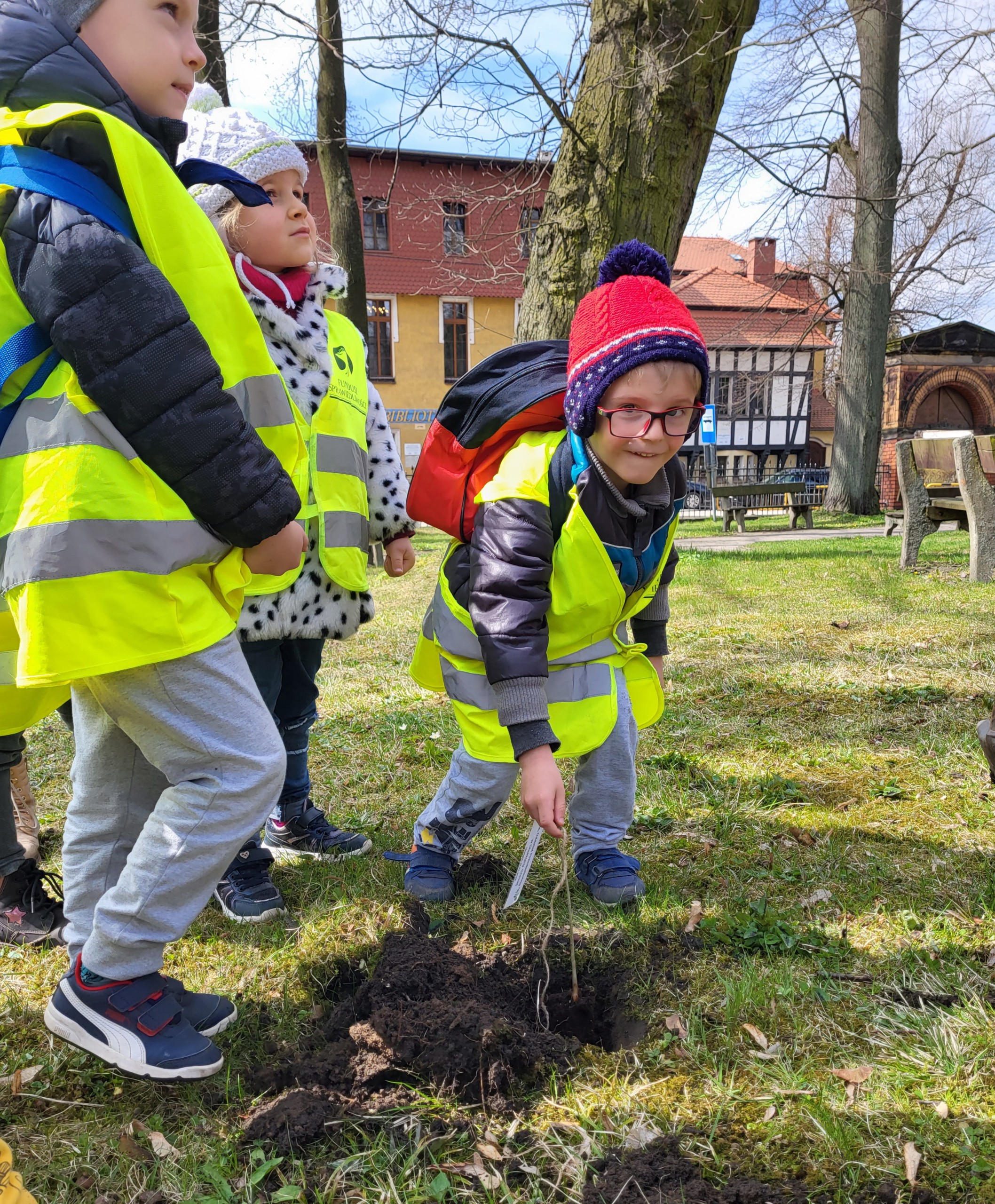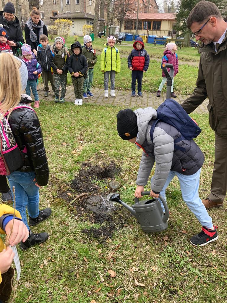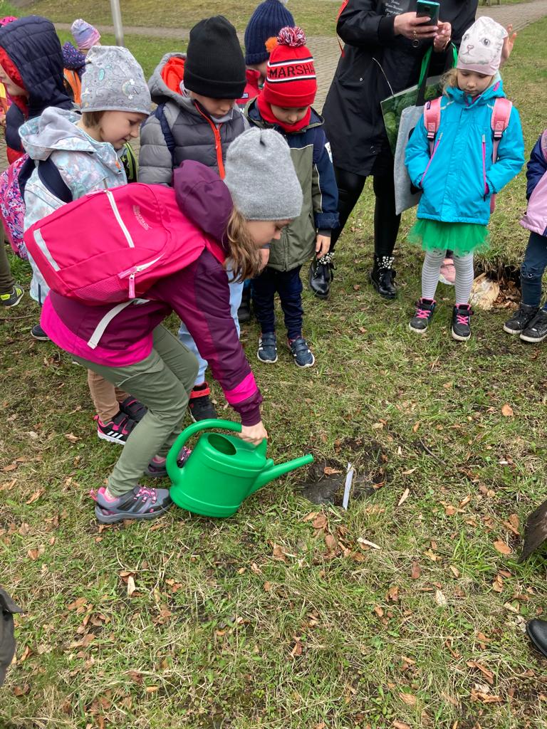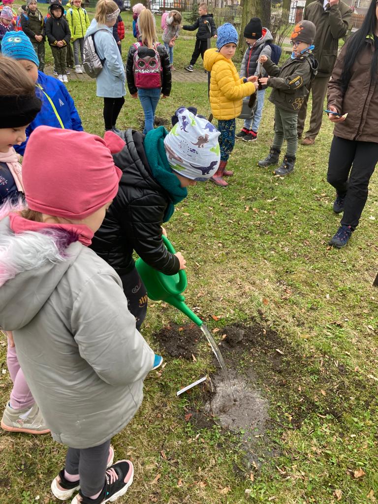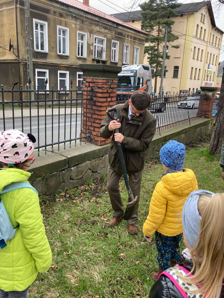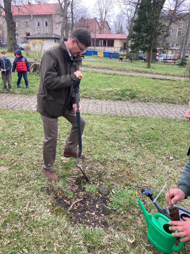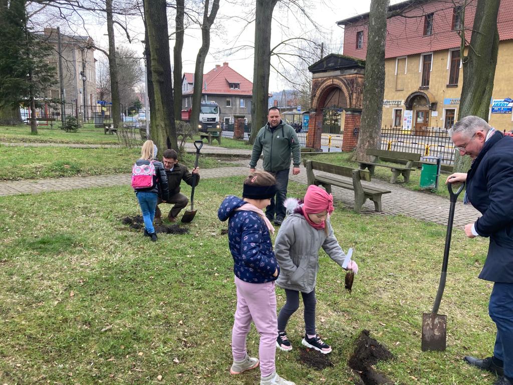Po wykładzie dzieci wraz z Burmistrzem Głuszycy Romanem Głodem oraz Nadleśniczym Nadleśnictwa Wałbrzych Leszkiem Kościńskim posadziły sadzonki dębów w Parku Jordanowskim w Głuszycy w myśl hasła Dnia Ziemi – „Inwestuj w naszą planetę”.