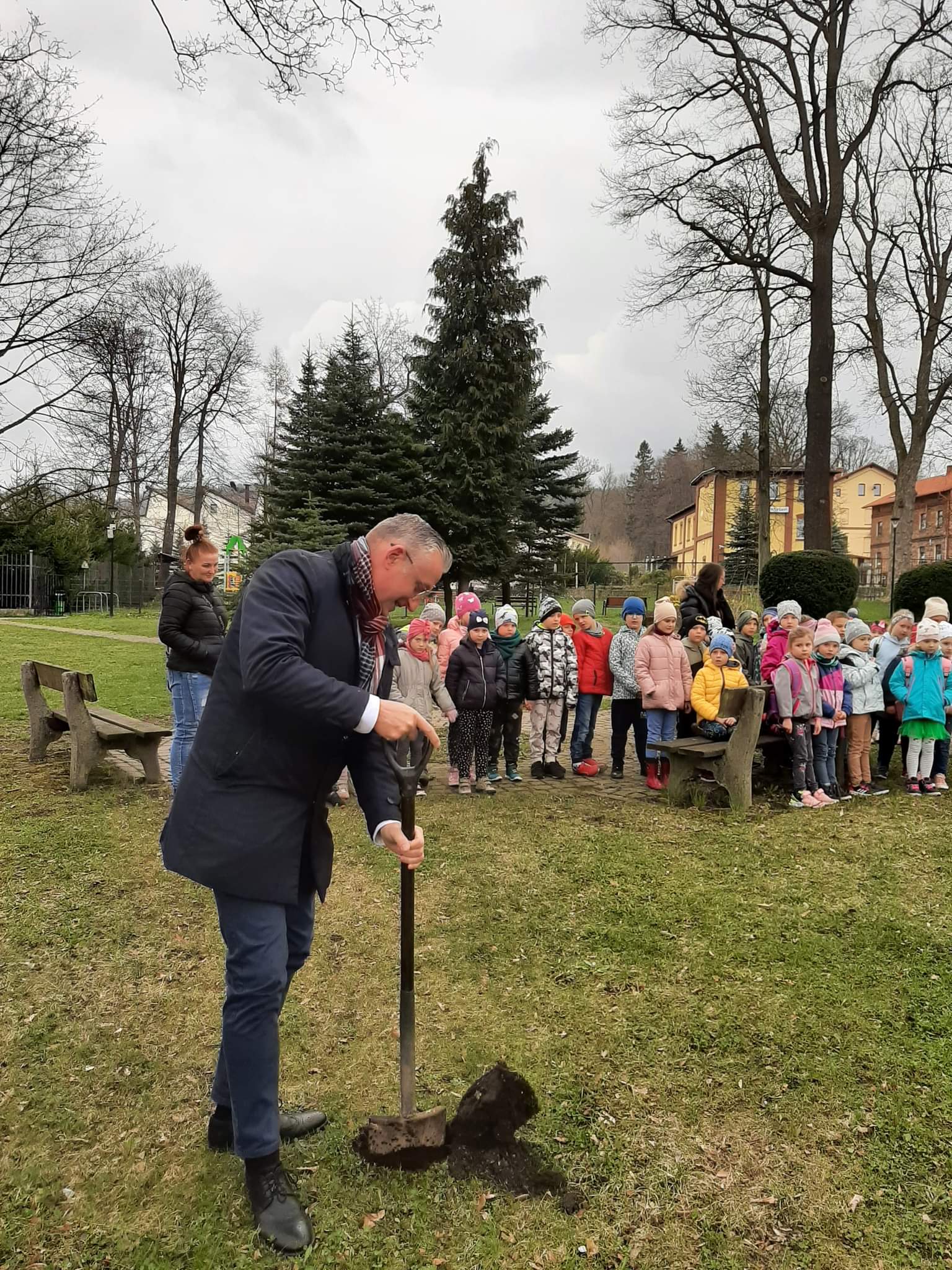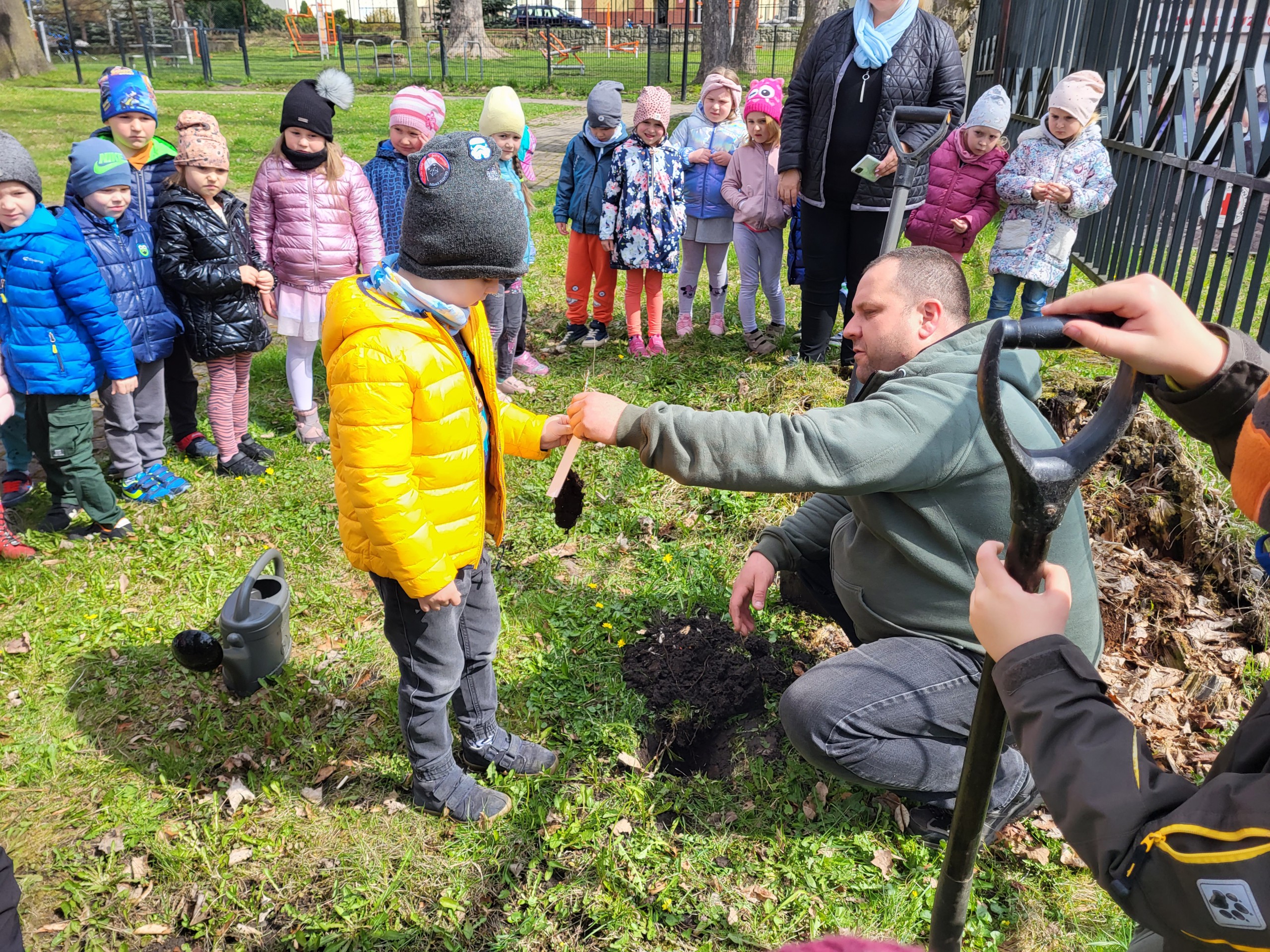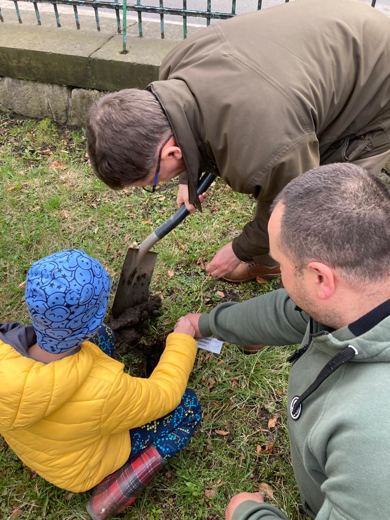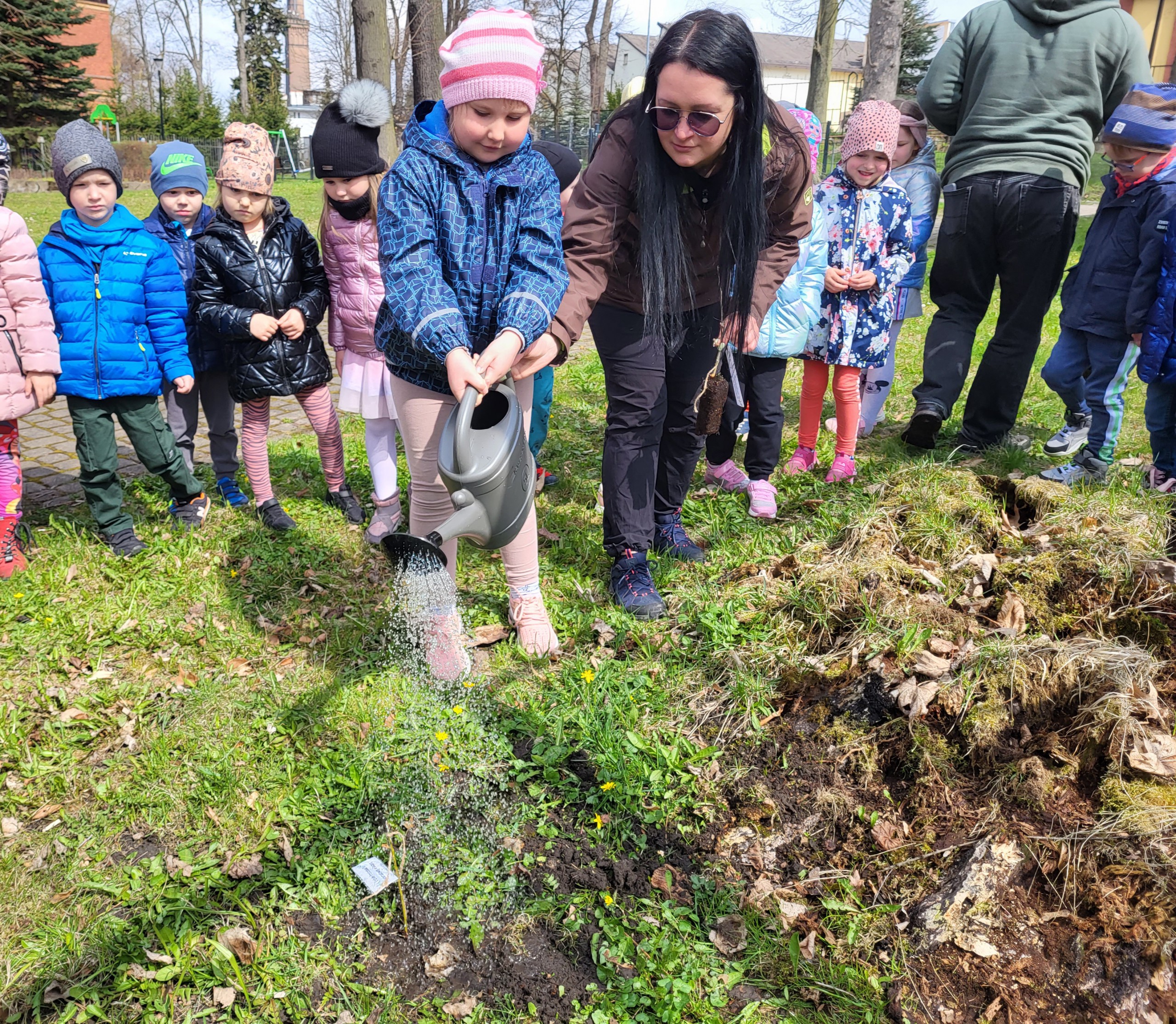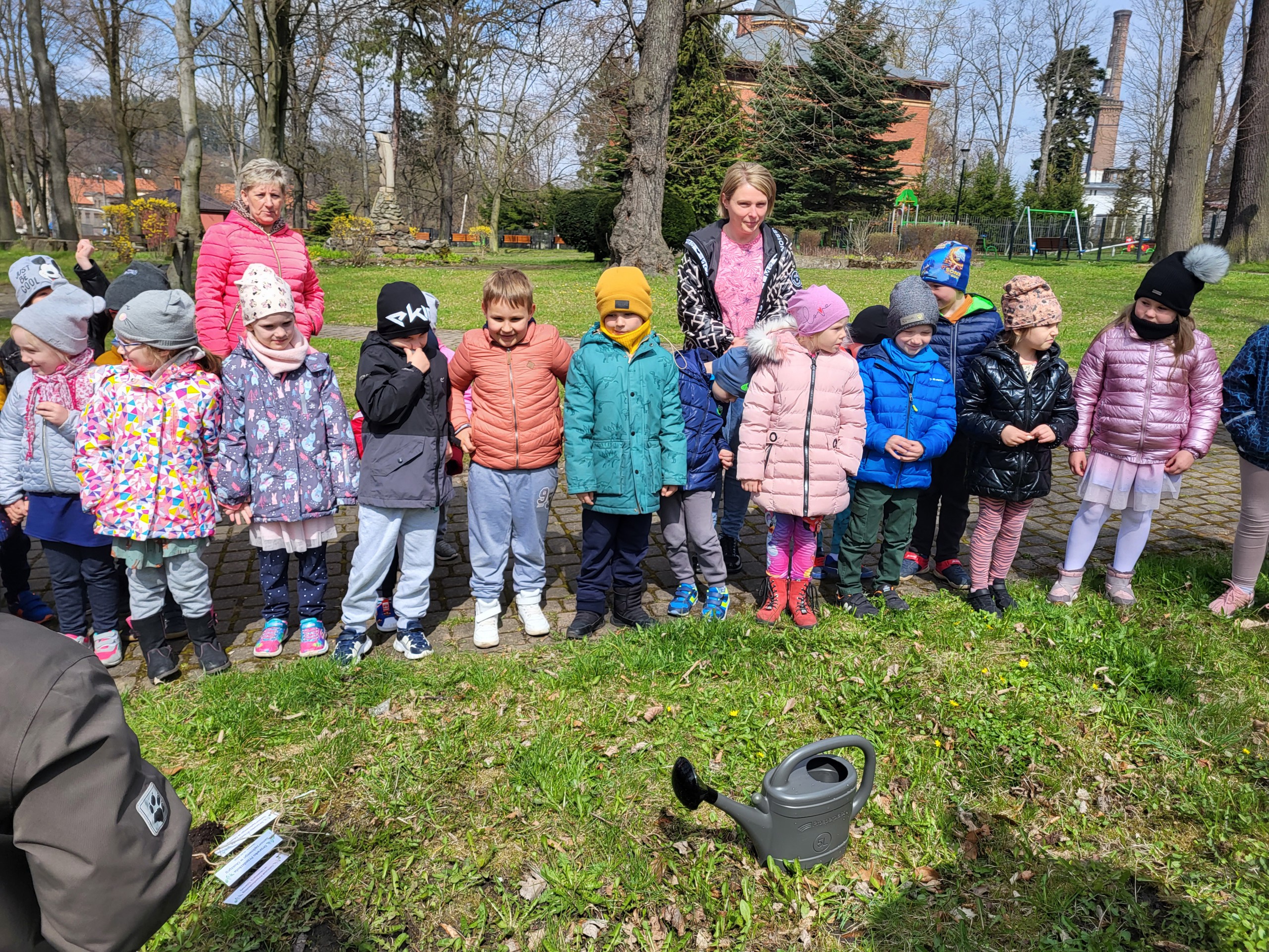Po wykładzie dzieci wraz z Burmistrzem Głuszycy Romanem Głodem oraz Nadleśniczym Nadleśnictwa Wałbrzych Leszkiem Kościńskim posadziły sadzonki dębów w Parku Jordanowskim w Głuszycy w myśl hasła Dnia Ziemi – „Inwestuj w naszą planetę”.