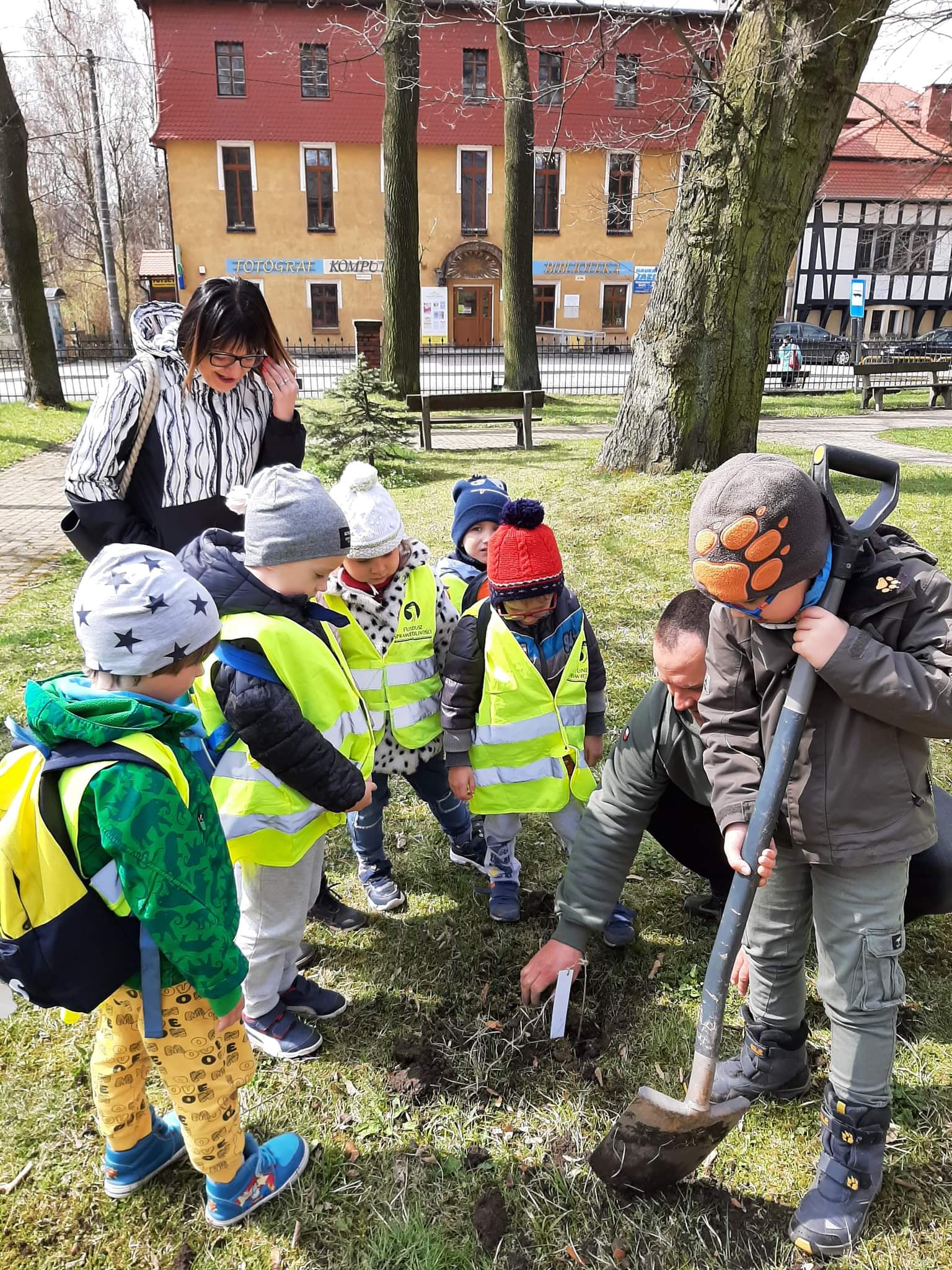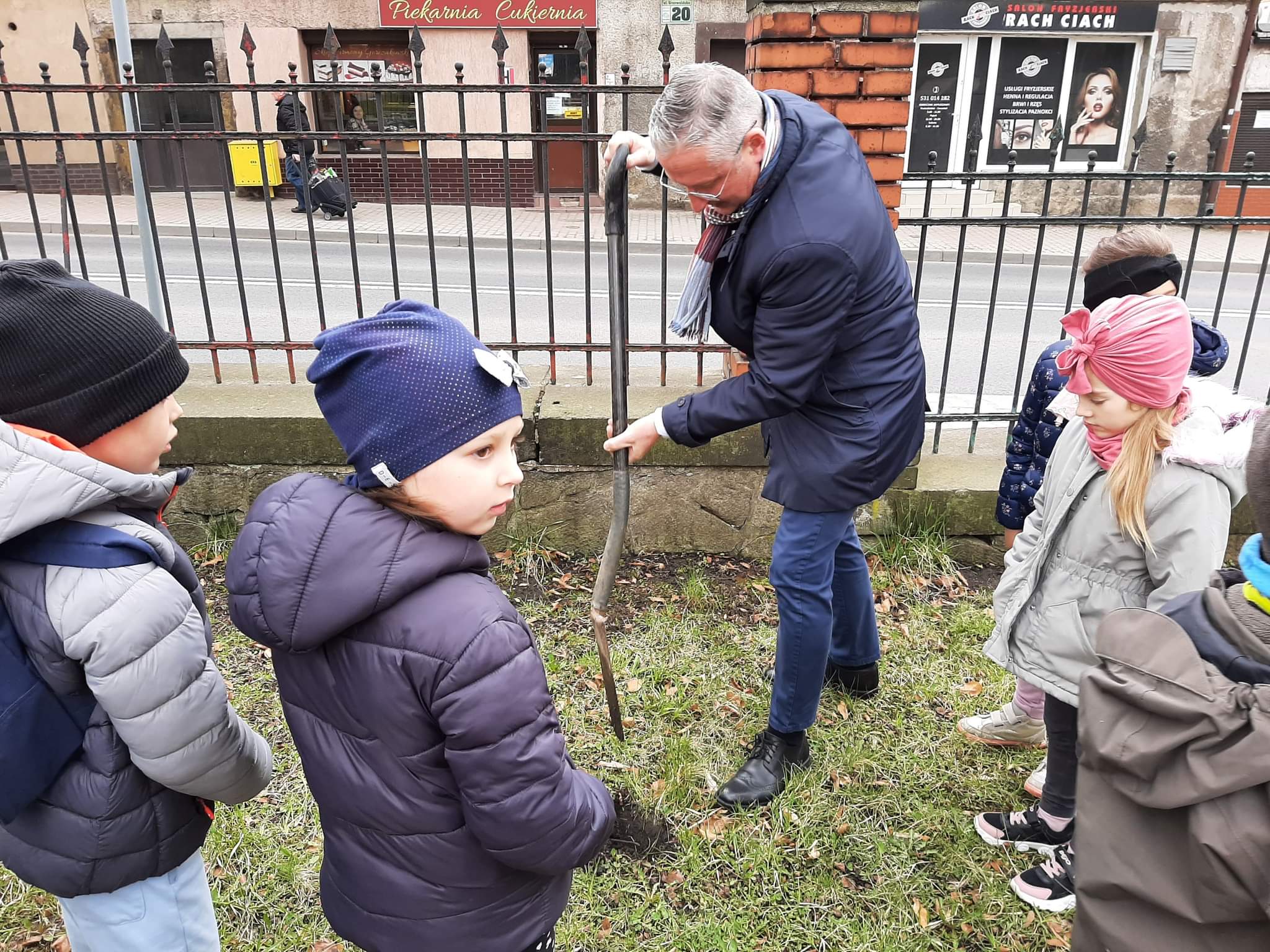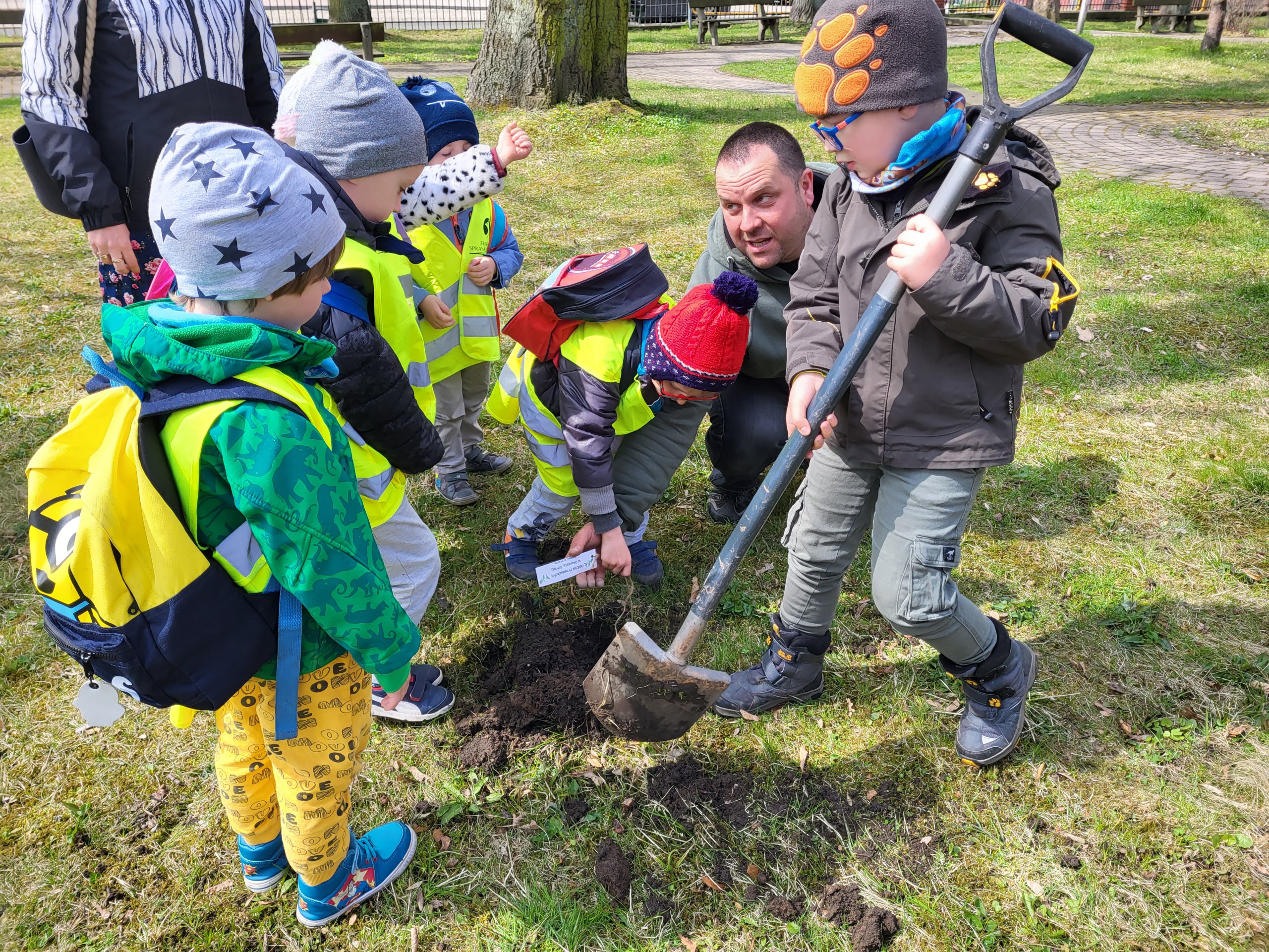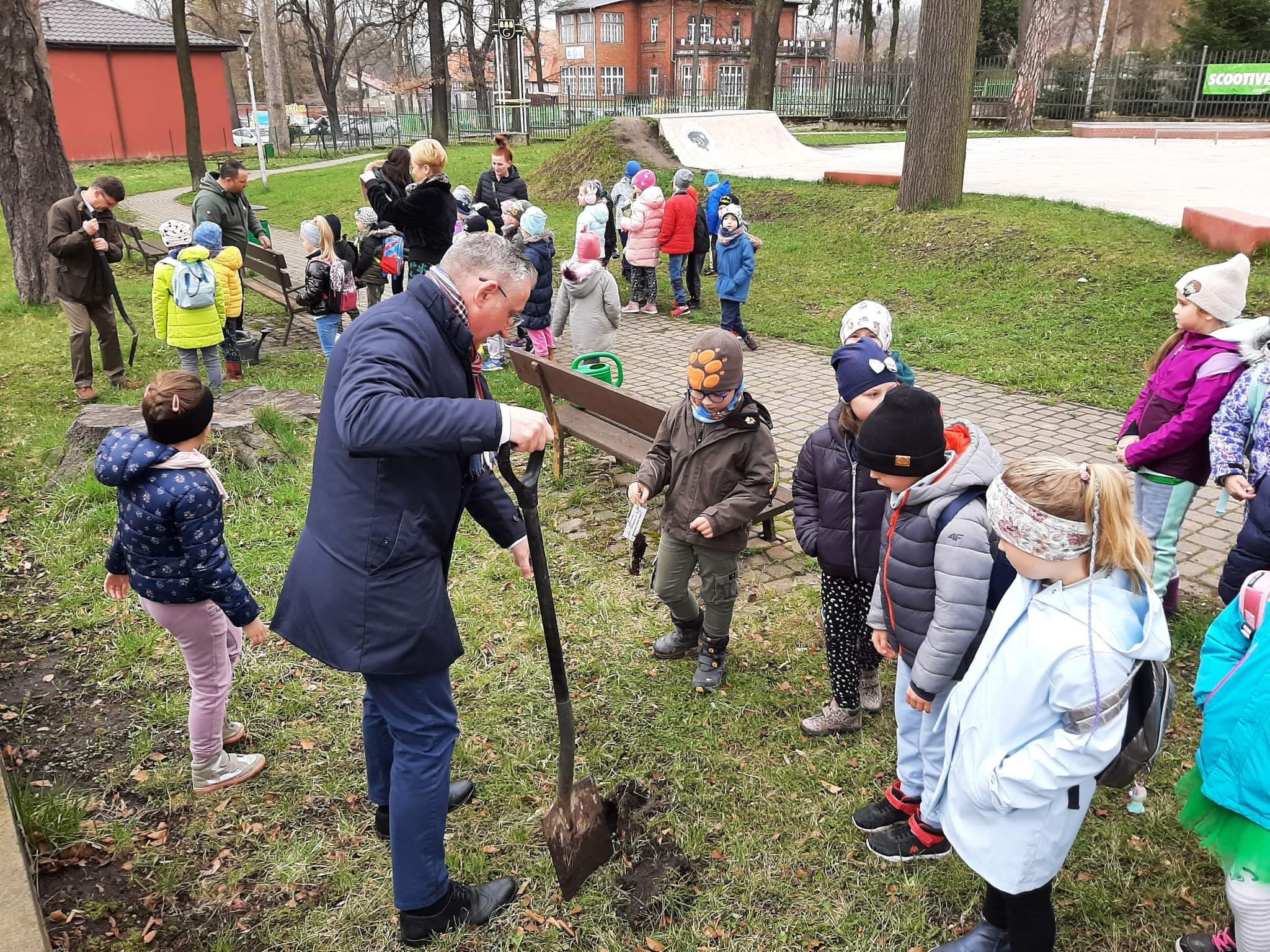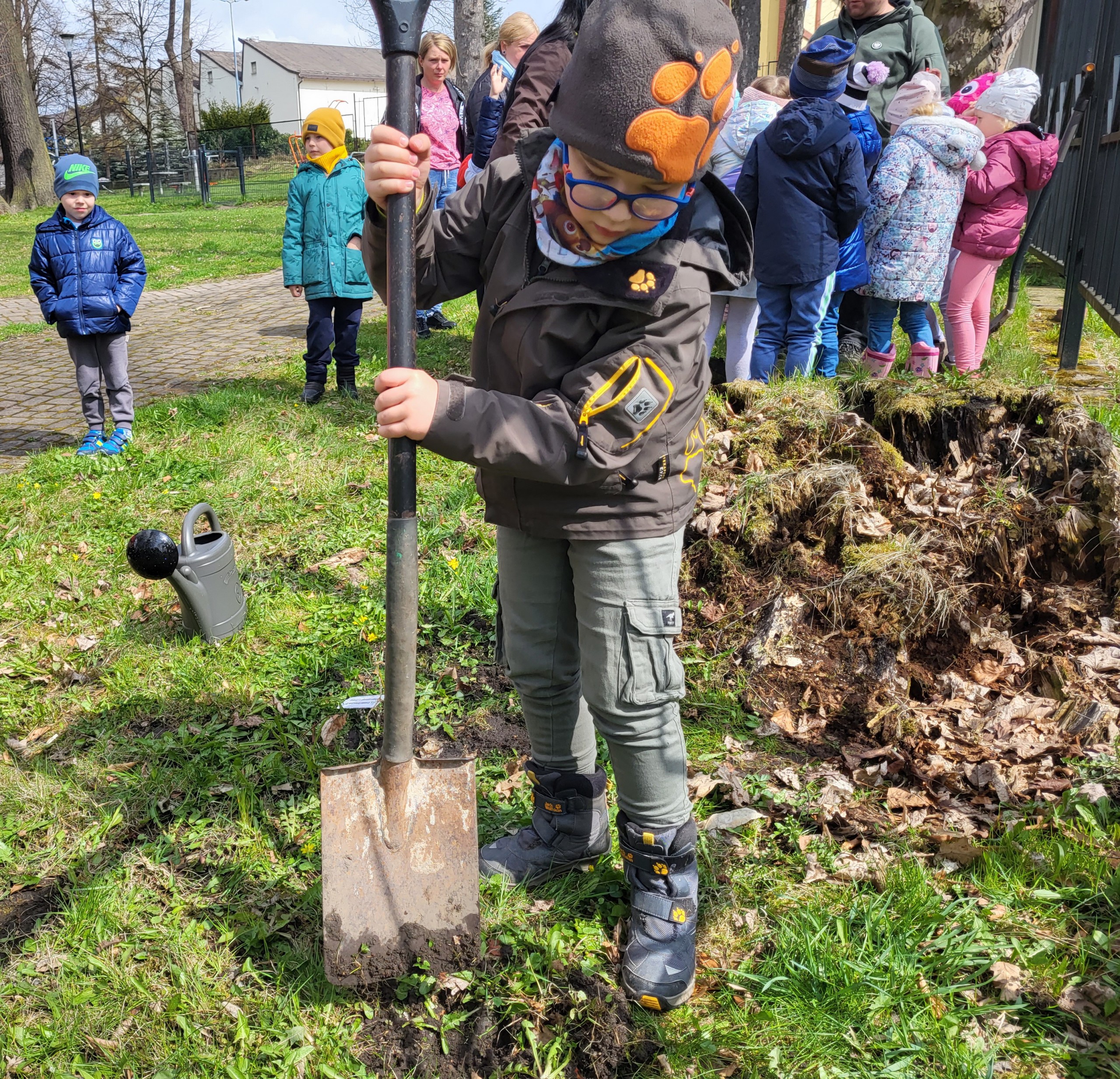 Po wykładzie dzieci wraz z Burmistrzem Głuszycy Romanem Głodem oraz Nadleśniczym Nadleśnictwa Wałbrzych Leszkiem Kościńskim posadziły sadzonki dębów w Parku Jordanowskim w Głuszycy w myśl hasła Dnia Ziemi – „Inwestuj w naszą planetę”.