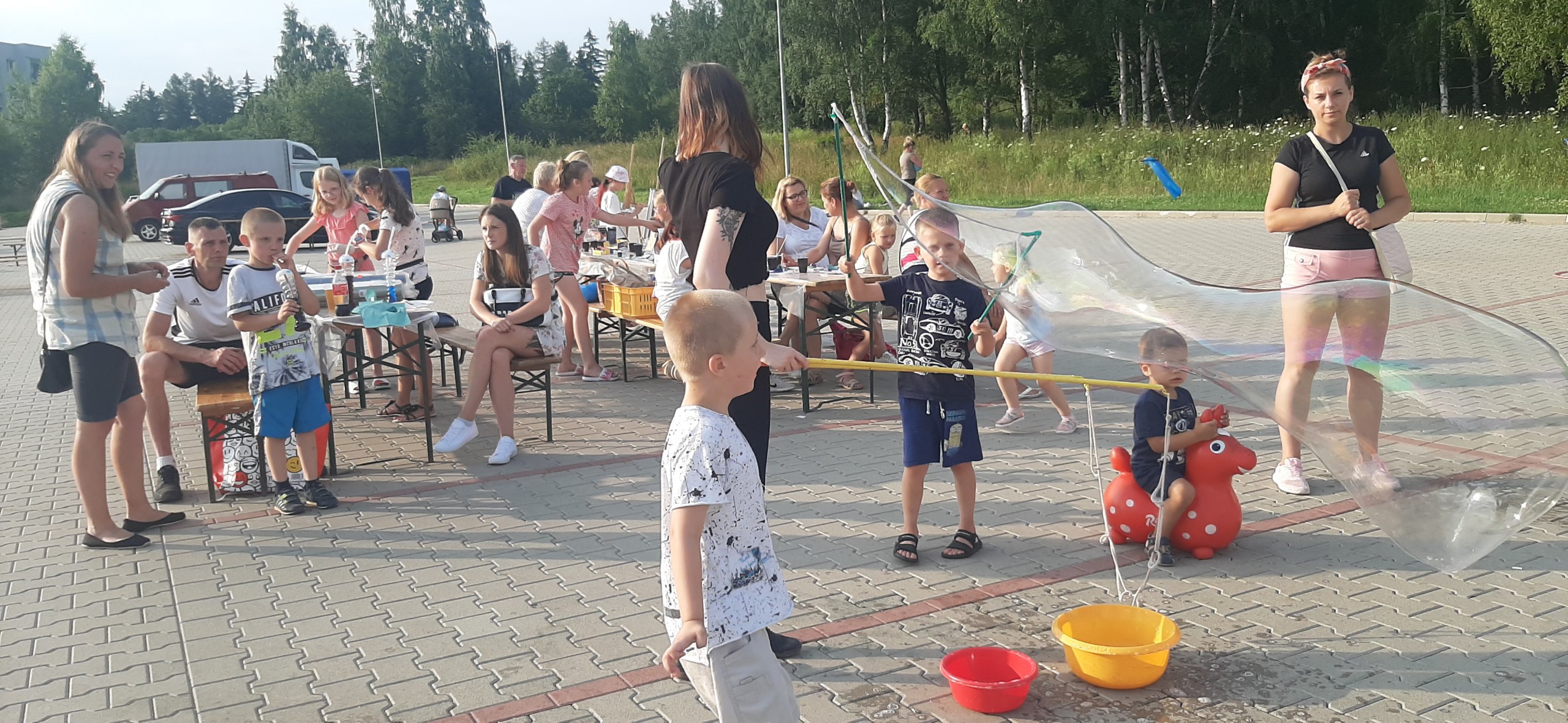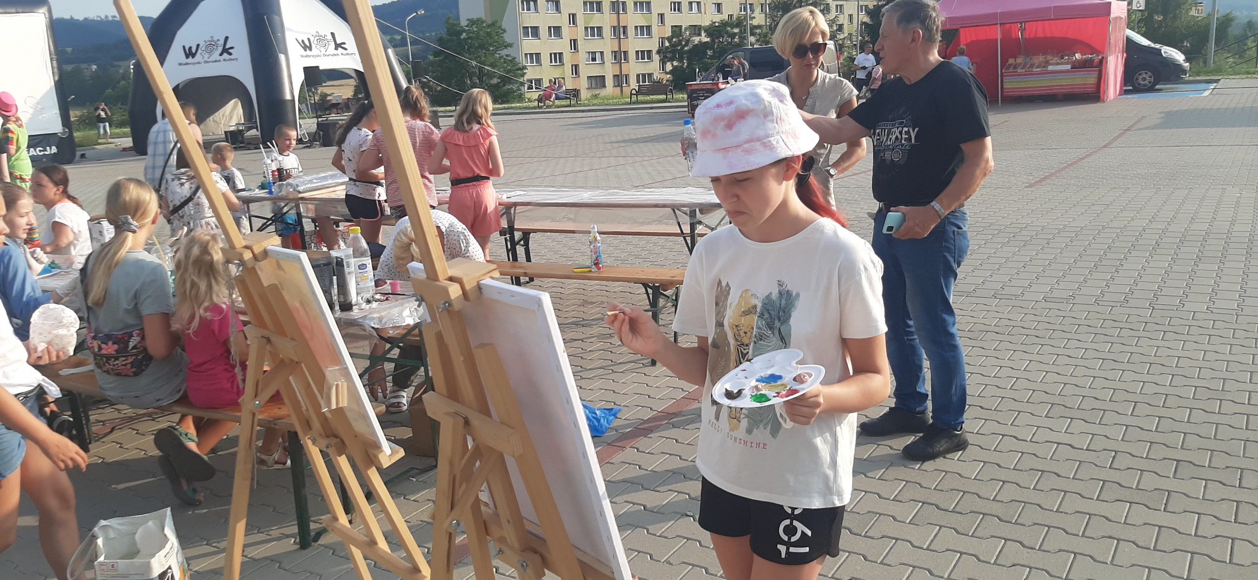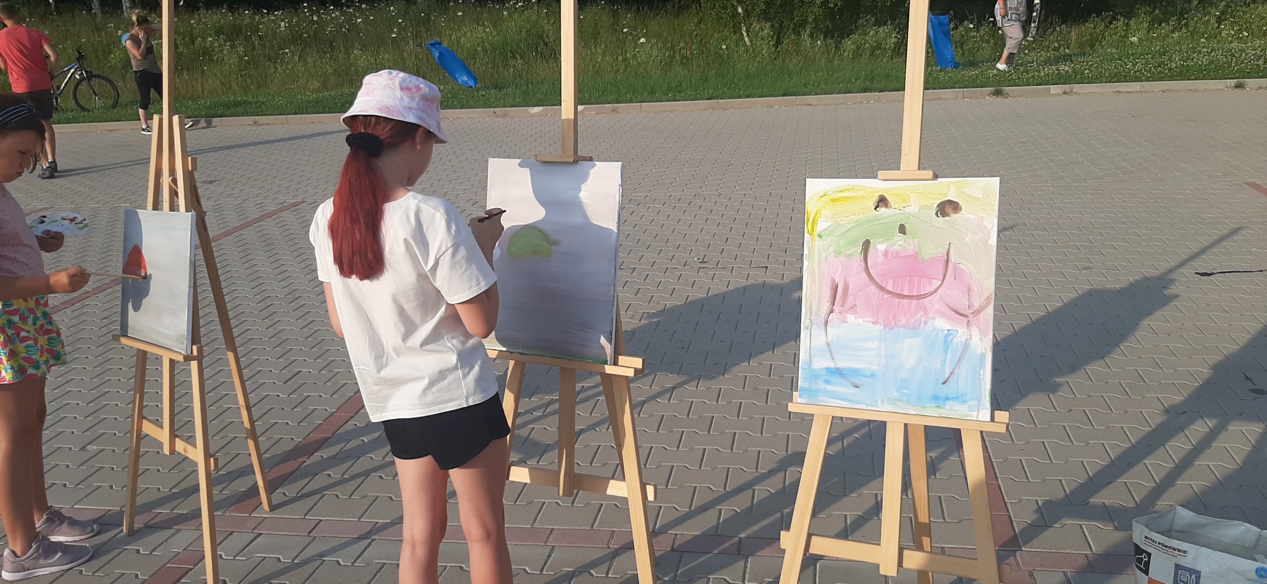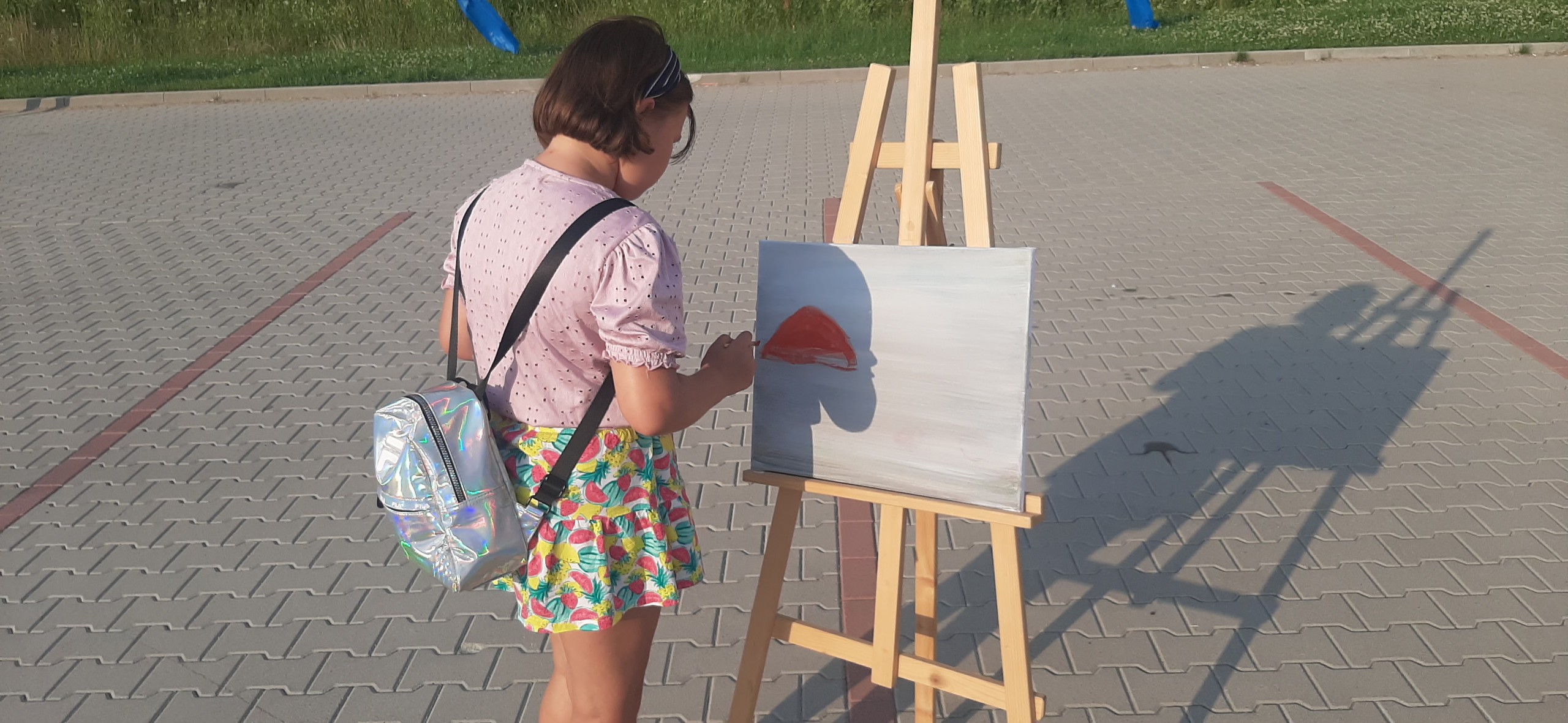 Niesamowite pokłady kreatywności wśród dzieci wyzwolili lokalni artyści – Ryszard Berczyński i Danuta Jabłońska. Malowanie na płótnie, zdobienie kamieni i wspólne malowanie obrazu były okazją do rodzinnej zabawy. Nie zabrakło też ulubionych letnich, piknikowych smaków, dzięki obecności lokalnych i zaprzyjaźnionych wystawców. Niestety nagła zmiana pogody uniemożliwiła obejrzenie zaplanowanego tytułu filmu do końca. Bardzo dziękujemy wszystkim za liczne przybycie, niestety – zabrakło trochę szczęścia.