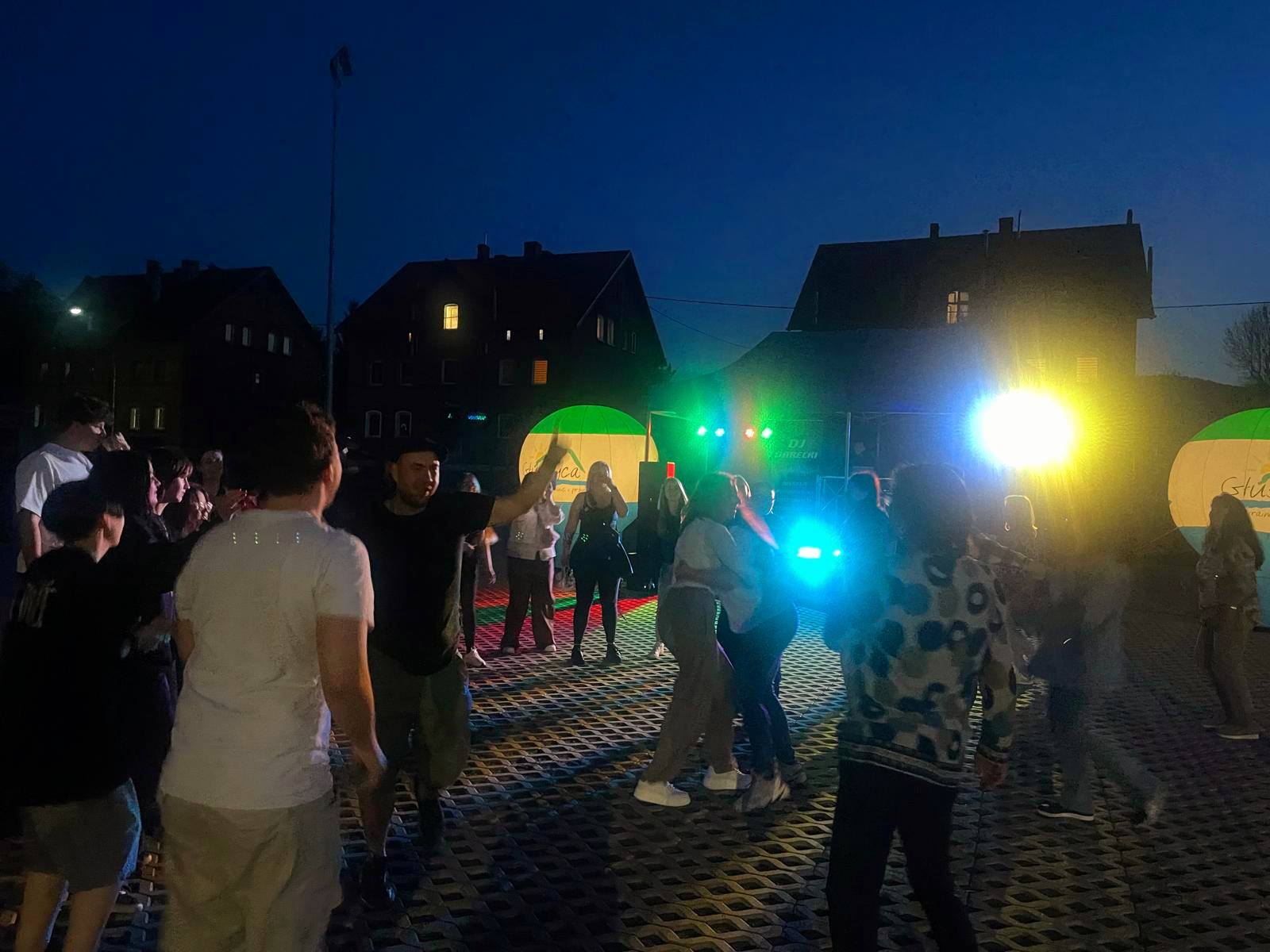2 maja przenieśliśmy się na największy obiekt sportowy w Głuszycy – boisko sportowe, o którym z duma mówią zawodnicy lokalnej drużyny piłkarskiej. Tym razem dla nieco starszych głuszyczan. DJ Darecki rozkręcał muzykę, kiełbaski z Jadła robiły swoje, a food truck – Zapiekana Beata serwował pyszne zapiekanki. Były „napoje gazowane”, świetne towarzystwo, ciepły wieczór – disco pod chmurką rozruszało mieszkańców, a to dopiero wstęp do czerwcowej imprezy na rozpoczęcie lata, jaka planowana jest w Głuszycy.