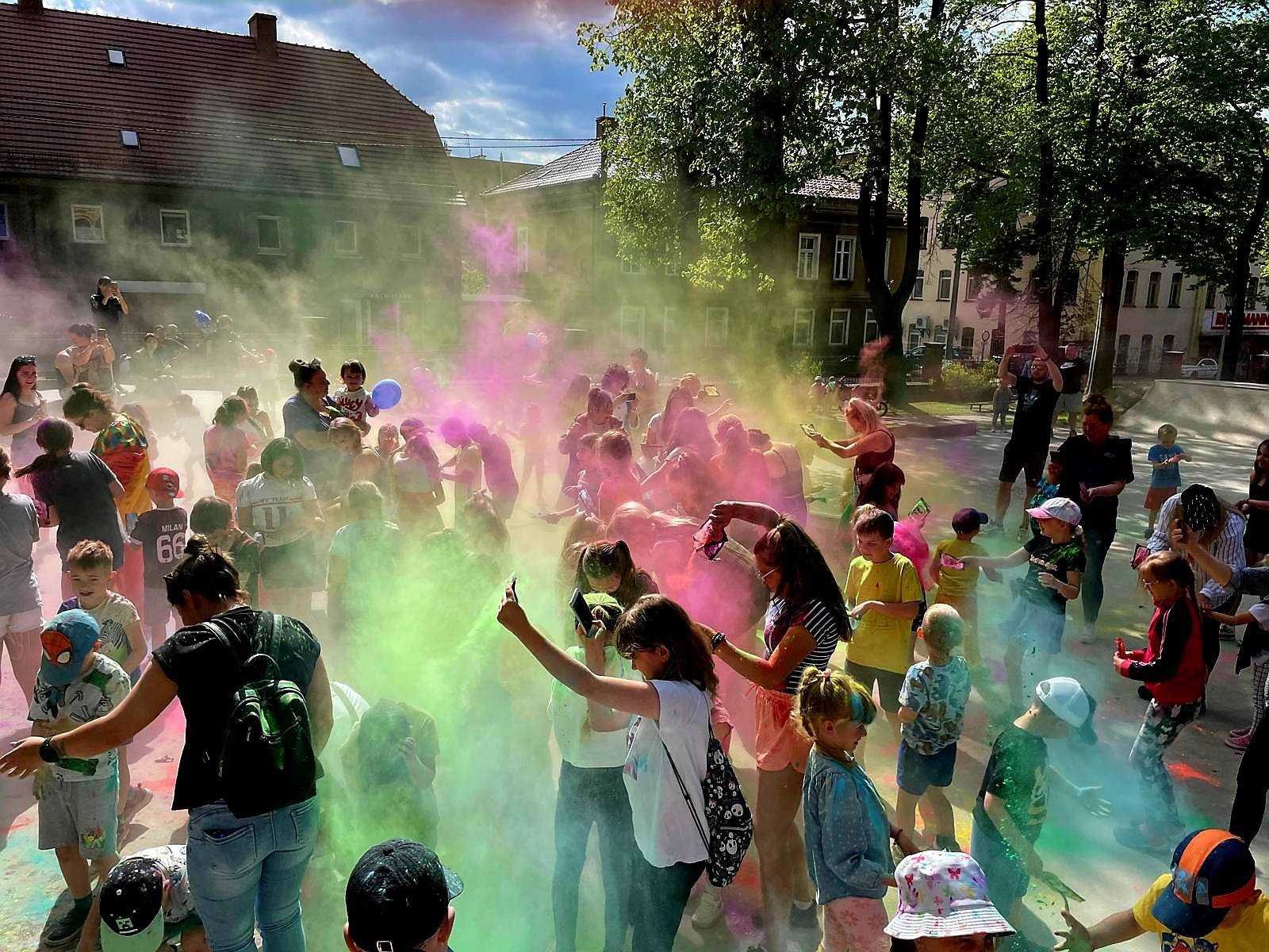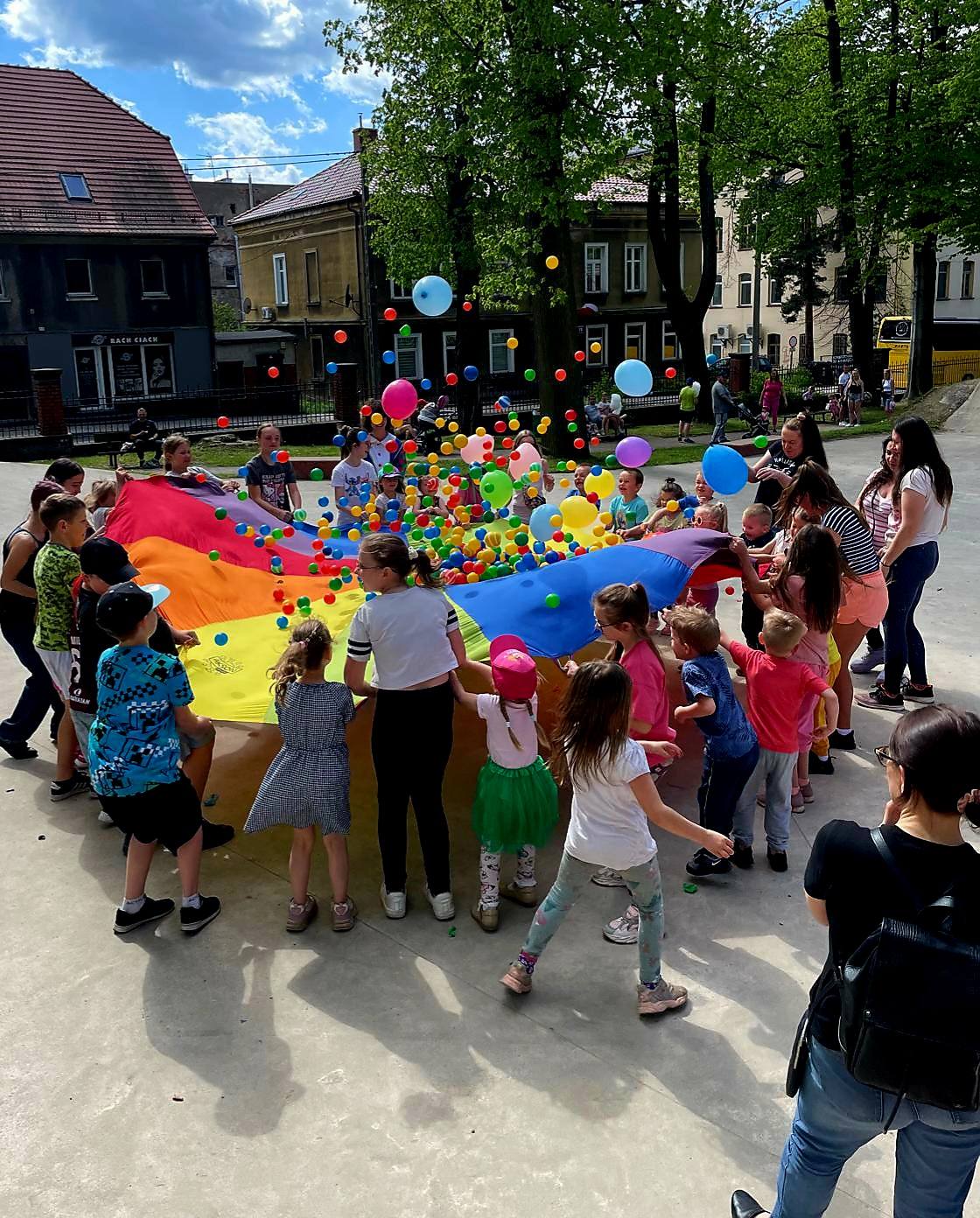 W czwartek 1 maja w Parku Jordanowskim była cała masa rozbawionych dzieciaków i śmiech niosący się po całej okolicy. Zebranych zabwiał Klaun Patryk, który – jak się szybko okazało – miał więcej energii niż niejeden przedszkolak po czekoladzie. Były gigantyczne bańki mydlane (serio, jedna prawie przysłoniła widok na Centrum Kultury), wyścigi na „nartach” w środku wiosny i tańce, które trudno opisać – coś pomiędzy „Belgijką” a „tuptańcem w salonie”. Dzieci były w siódmym niebie, a dorośli… cóż, niektórzy nie przyznają się do tego do dziś, ale też bawili się znakomicie, od stóp do głów umorusani kolorowym pyłem.