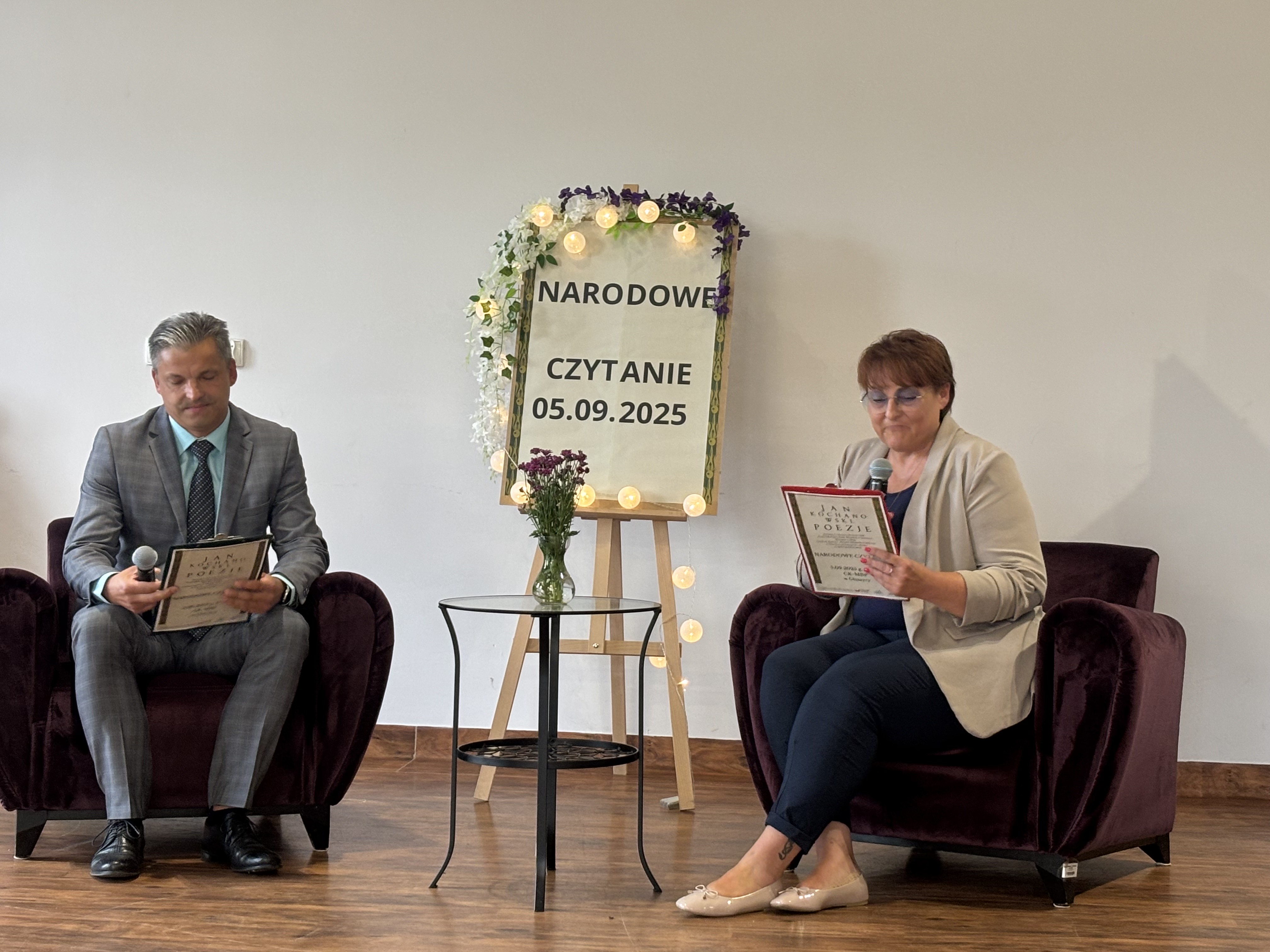 Utwory przeczytali dla nas przedstawiciele głuszyckich instytucji. Zastępca burmistrza Głuszycy Grzegorz Szymański, dyrektor Centrum Kultury- Miejskiej Biblioteki Publicznej Aleksandra Pawlak i jej syn Aleks , dyrektor Biura Poselskiego Monika Broczek, prezes Uniwersytetu Trzeciego Wieku Jerzy Janus, radny Rady miejskiej Dawid Okarma, przewodnicząca głuszyckiej Rady Kobiet Magdalena Kandefer oraz pan Grzegorz Milczarek.