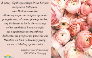 Z okazji Ogólnopolskiego Dnia Sołtysa wszystkim Sołtysom oraz Radom Sołeckim składamy najserdeczniejsze życzenia: pomyślności, zdrowia, pogody ducha, aby Państwa dążenia do realizacji celów osobistych i zawodowych nie napotykały na przeszkody.