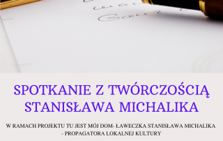 8 maja o godz. 17 zapraszamy do sali widowiskowej Centrum Kultury-Miejskiej Biblioteki Publicznej w Głuszycy na wieczór poświęcony twórczości śp. Stanisława Michalika. To podsumowanie projektu „TU JEST MÓJ DOM” -