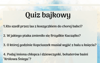 Bajki, baśnie, legendy, opowiadania, powieści… to skarbnica niesamowitych historii i równie nietuzinkowych bohaterów, których poznanie jest wspaniałą przygodą. Rozwiąż quiz i sprawdź, co pamiętasz z tych wyjątkowych spotkań. Nie martwcie