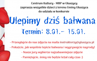 Mamy wreszcie trochę śniegu! To idealny moment, aby zaszaleć i ulepić bałwana. Zatem nie siedzimy w domu! Ogłaszamy konkurs na ulepienie śnieżnego przyjaciela dużego, małego, bez różnicy. Ma być bałwan,