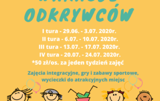„WAKACJE ODKRYWCÓW” – to hasło przewodnie tegorocznych głuszyckich zajęć wakacyjnych. Zapraszamy dzieci w wieku 6-12 lat zamieszkałe na terenie Gminy Głuszyca do skorzystania z oferty zajęć wakacyjnych organizowanych przez Centrum