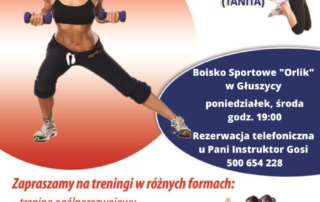 Zapraszamy na aerobik, który odbywa się w poniedziałki i środy o godz.19:00 na Boisku Sportowym " Orlik" w Głuszycy. Ze względu na panującą epidemię koronawirusa – w trosce o bezpieczeństwo