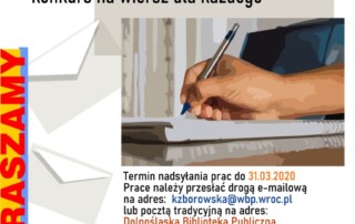 Zapraszamy seniorów oraz poetów do udziału w konkursach literackich ogłoszonych przez Dolnośląską Bibliotekę Publiczną we Wrocławiu. Regulaminy: http://dswsilesiana.blogspot.com/2020/02/konkurs-dla-seniorow-2020-tajemniczy.html http://dswsilesiana.blogspot.com/2020/02/konkurs-mody-poeta-dolnego-slaska-2020.html