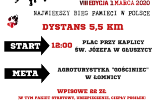 W niedzielę 1 marca 2020 r. zapraszamy miłośników aktywnego wypoczynku, młodzież i dzieci z rodzicami do udziału w głuszyckiej edycji ogólnopolskiego wydarzenia pn. Tropem Wilczym. Bieg Pamięci Żołnierzy Wyklętych. Tym