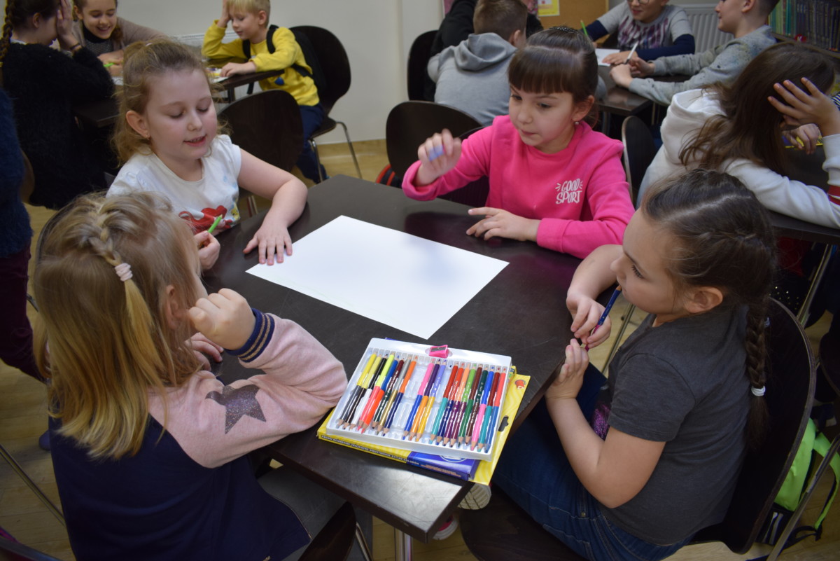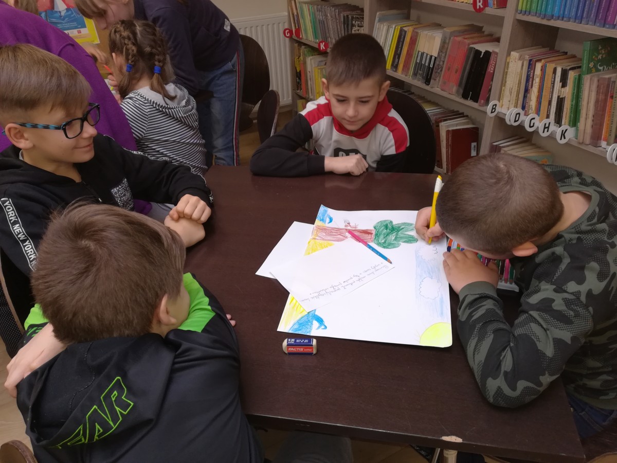 Uczniowie korzystają z zasłużonego odpoczynku od szkoły i nauki. Ale to nie znaczy, że dzieciaki przestały być aktywne! W pierwszym dniu ferii gościliśmy w bibliotece dwie grupy dzieci, uczestniczących w zajęciach feryjnych w głuszyckim CK-MBP. Temat zajęć związany był z ekologią, a ich niekonwencjonalna forma wykorzystująca teatrzyk kamishibai wydawała się satysfakcjonująca dla młodych uczestników. Wykazali się oni inwencją twórczą proponując własne pomysły dotyczące ochrony naszej planety i prezentując je w formie spektaklu kamishibai.