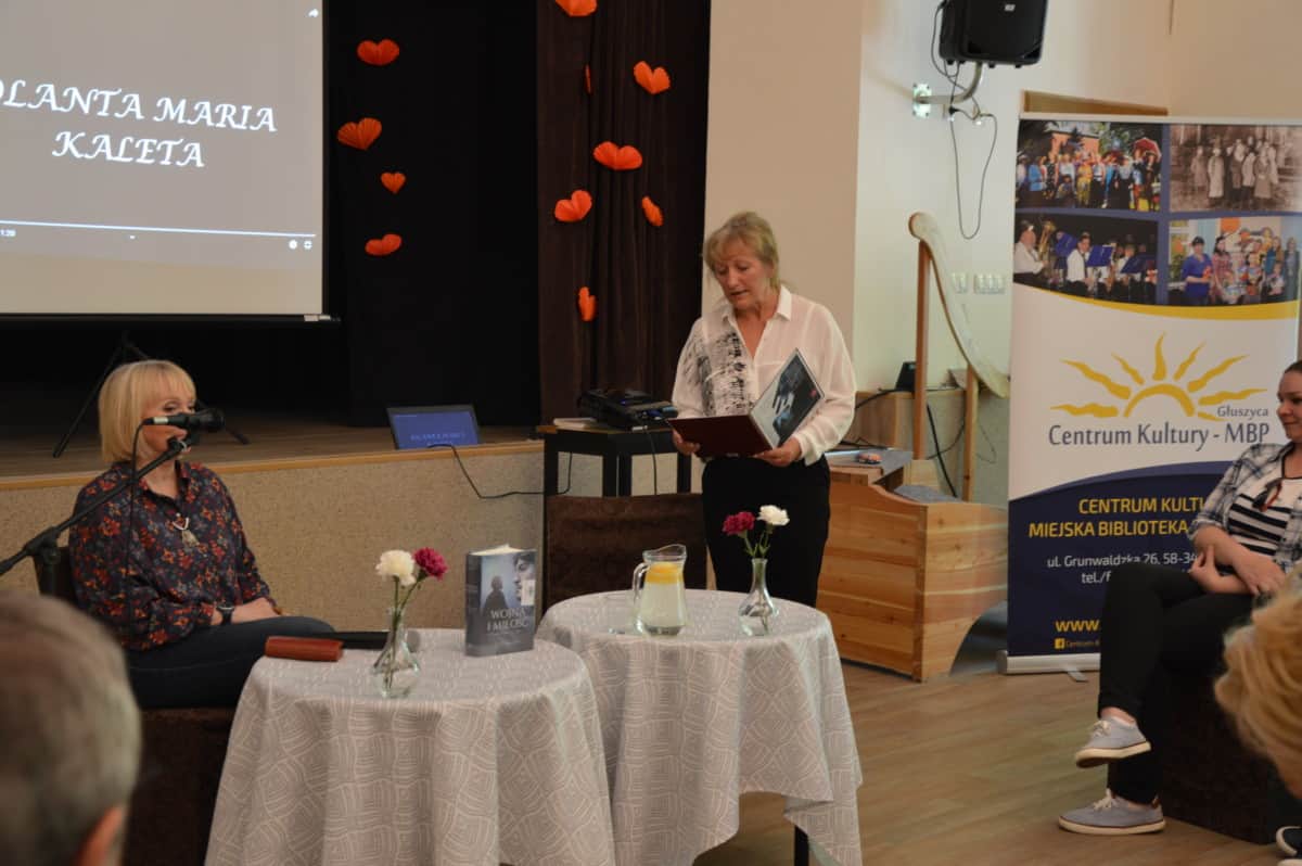 W piątkowy wieczór 24 maja miłośnicy twórczości Jolanty Marii Kalety mieli możliwość spotkać się z pisarką w Centrum Kultry-Miejskiej Bibliotece Publicznej w Głuszycy. Spotkanie zostało zorganizowane w ramach kampanii promocyjnej najnowszej powieści Jolanty Marii Kalety pt. „Wojna i miłość. Katarzyna i Igor”.
