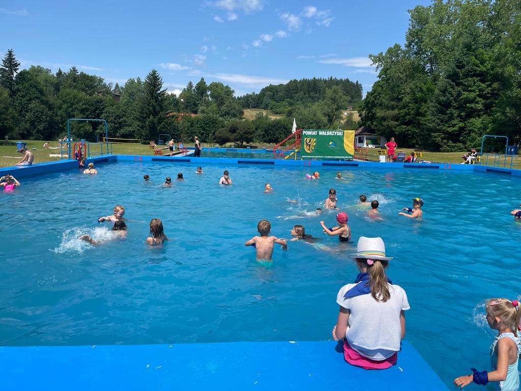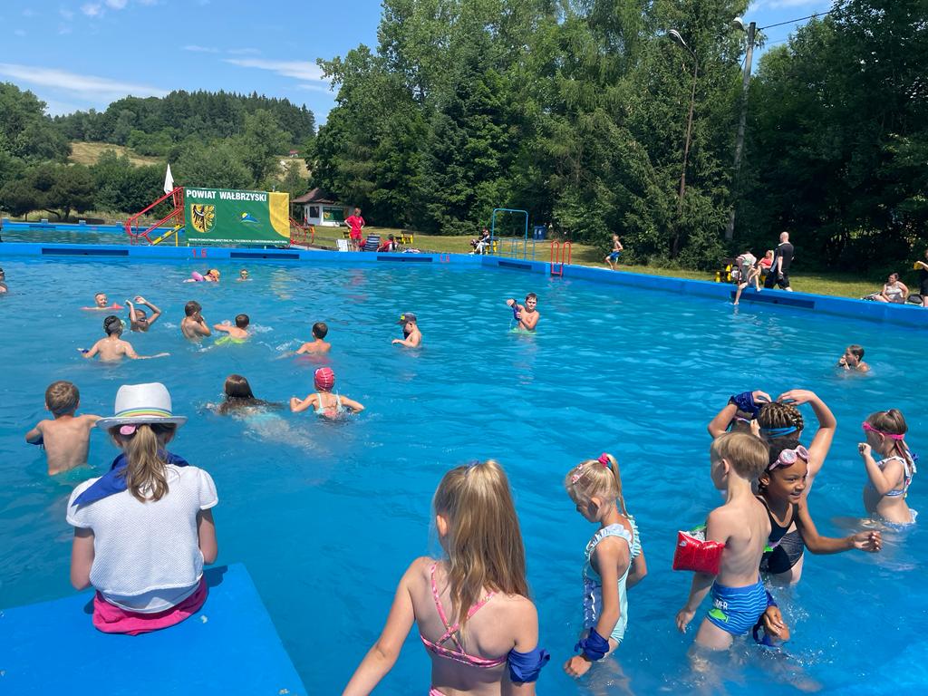 Uczestnicy półkolonii -bogatsi o niezbędną wiedzę -udali się na głuszycki obiekt kąpielowy, gdzie dzieci wzięły udział w turnieju pływackim lub kibicowali swoim koleżankom i kolegom. Po takich emocjach została już tylko wspaniała zabawa w wodzie. Głuszyckie półkolonie są dofinansowane z budżetu Gminy Głuszyca ze rodaków Miejskiej Komisji Rozwiązywania Problemów Alkoholowych.