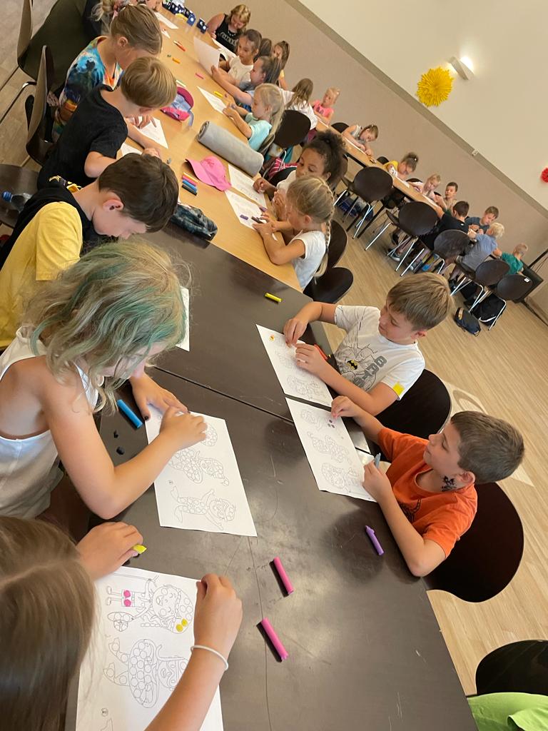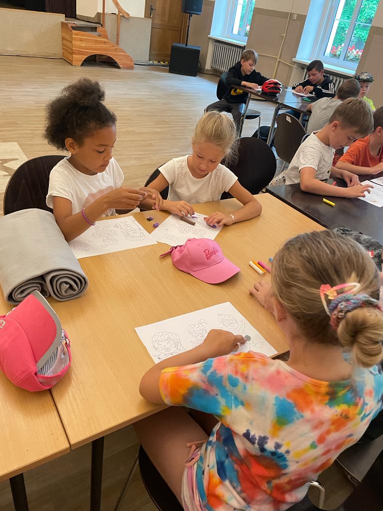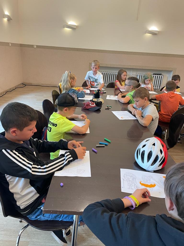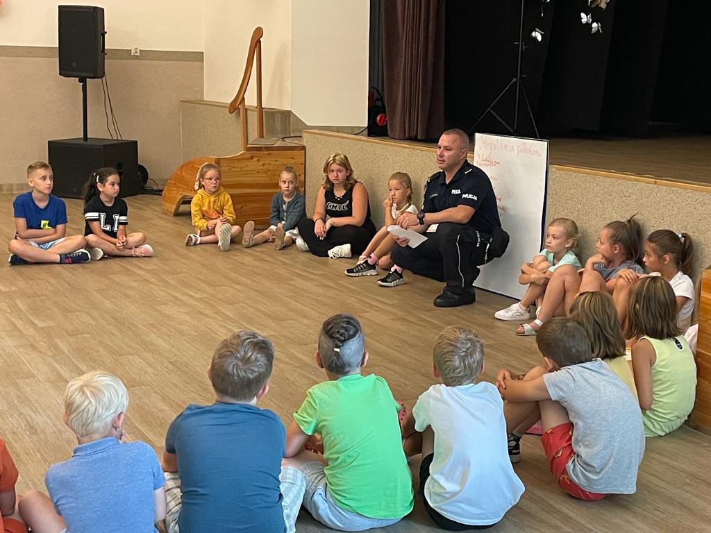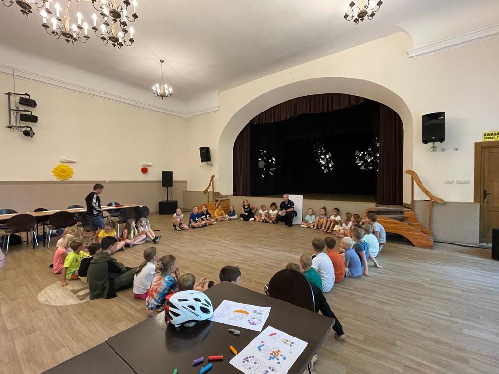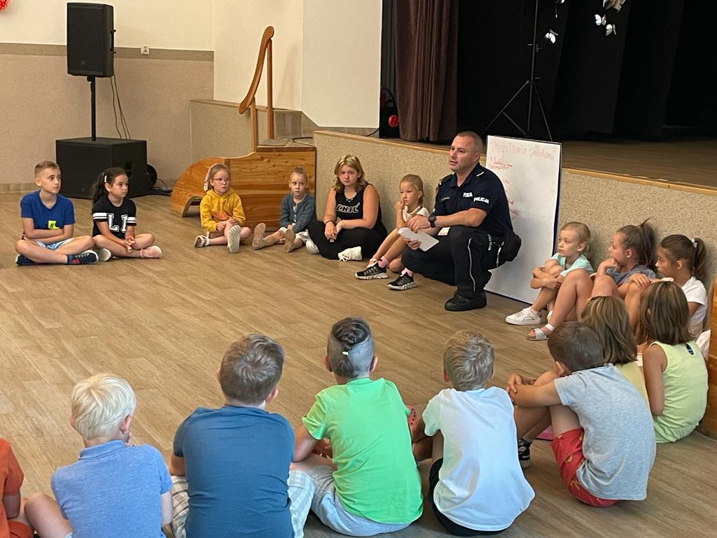 Pierwszego dnia dzieci poznawały się nawzajem, wspólnie ustalały zasady panujące na półkolonii oraz miały spotkanie z policjantem z głuszyckiego komisariatu sierżantem Marcinem Nogawką, który opowiadał o tym, jak się zachowywać, żeby bezpiecznie korzystać z uroków lata, zabaw na świeżym powietrzu i nad wodą.