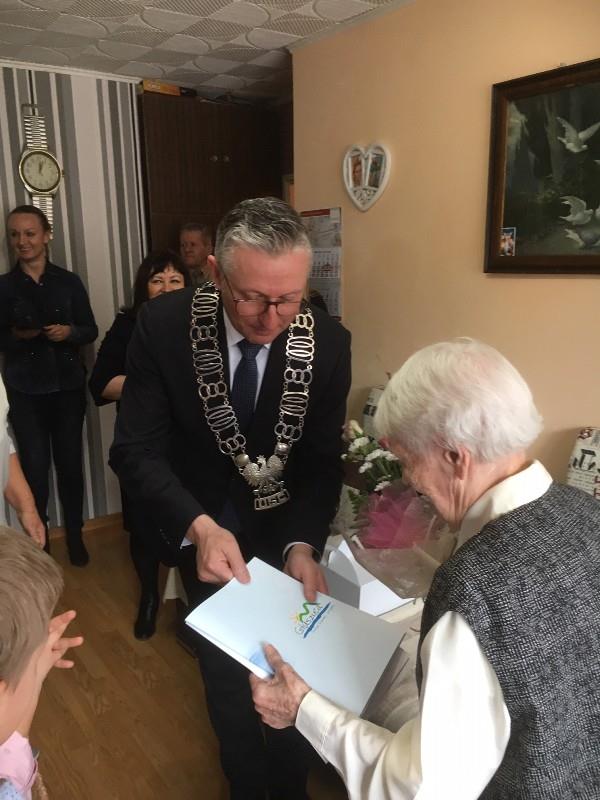 -Szanowna Pani Jadwigo, w imieniu własnym, głuszyckiego samorządu i Mieszkańców naszej Gminy gratuluję Pani osiągnięcia tak pięknego wieku i życzę niegasnącej radości, dużo zdrowia i sił, pogody ducha oraz dalszych lat życia wśród miłości najbliższych osób – życzył Jubilatce Burmistrz Roman Głód.