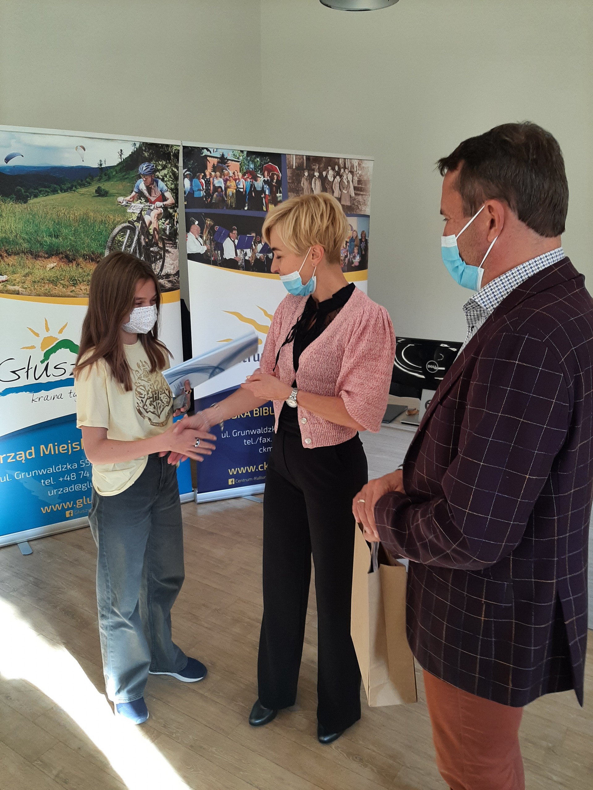 Centrum Kultury – Miejska Biblioteka Publiczna w Głuszycy jako partner projektu prowadzonego przez Fundację Zrównoważonego Rozwoju w Warszawie zajmowało się koordynacją projektu na terenie gminy. Dodatkowo jeden z pracowników wziął udział w szkoleniu i udzielał wsparcia młodym uczestnikom kursu. Dzięki realizacji zadania instytucja otrzymała 6 laptopów. W piątek 1 października wszyscy uczestnicy projektu spotkali się w czytelni internetowej CK- MBP i otrzymali zaświadczenia poświadczające udział w szkoleniu, a także drobne upominki rzeczowe od Burmistrza Głuszycy Romana Głoda. Gratulacje za wytrwałość w zdobywaniu wiedzy przekazali Zastępca Burmistrza Grzegorz Szymański i Dyrektor Centrum Kultury-MBP Sabina Jelewska.