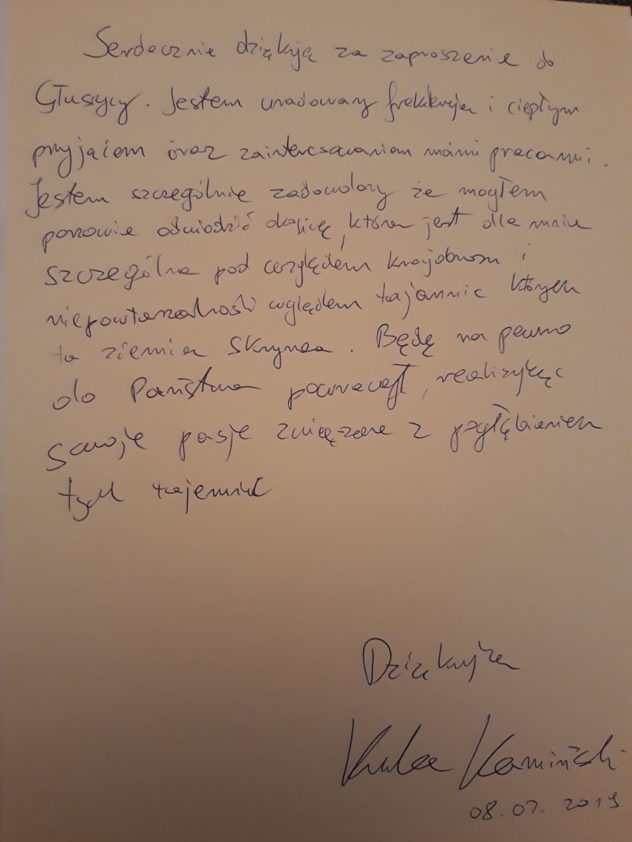 Serdecznie dziękujemy Kubie za wspaniały, niezapomniany wieczór! Spotkanie zostało zorganizowane dzięki uprzejmości Państwa Eweliny i Grzegorza Borensztajnów- koordynatorów projektu „Szlakiem Riese”. Dziękujemy! Małą namiastkę prac Kuby Kamińskiego można będzie obejrzeć w czytelni Miejskiej Biblioteki Publicznej w Głuszycy.
