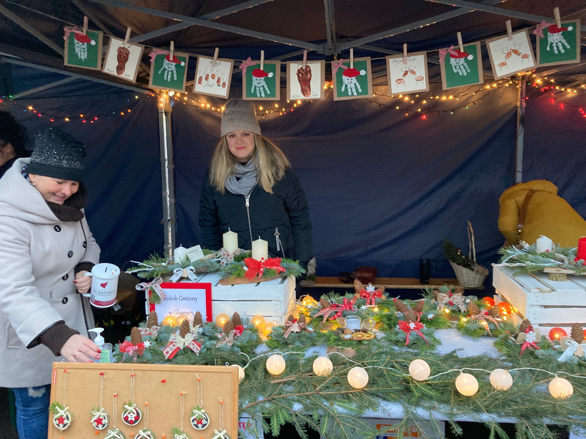 Kto pojawił się na jarmarku mógł nie tylko spotkać Świętego Mikołaja w asyście Elfa, lecz także sam miał szansę stać się św. Mikołajem, gdyż podczas wydarzenia przeprowadzona była zbiórka publiczna na rzecz Huberta- Małego Wojownika, podopiecznego Fundacji „Na Ratunek Dzieciom z Chorobą Nowotworową”. Na stoiskach pojawiły się piękne ozdoby i kartki świąteczne wykonane przez głuszyckich uczniów ze szkół podstawowych, pracowników przedszkola i żłobka, świetlicy wiejskiej w Sierpnicy, a także przez lokalnych wytwórców. Można było spróbować smacznych świątecznych potraw serwowanych przez Restaurację przy Podziemnym Mieście Osówka oraz głuszyckie „Jadło”. Świerkowe gałązki z załączonymi świątecznymi życzeniami wręczali przybyłym pracownicy Ośrodka Pomocy Społecznej w Głuszycy.