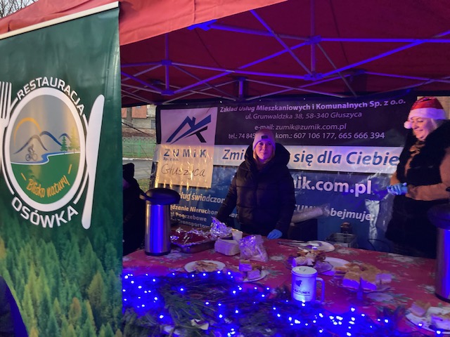 Na zaproszenie Burmistrza Głuszycy Romana Głoda w piątkowe popołudnie i wieczór 17 grudnia parking obok Przedszkola Samorządowego w Głuszycy stał się świąteczną krainą. Ręcznie wykonane bożonarodzeniowe stroiki i ozdoby, świąteczne przysmaki oraz nastrojowe świąteczne piosenki, kolędy i pastorałki towarzyszyły wszystkim tym, którzy postanowili odwiedzić Głuszycki Jarmark Bożonarodzeniowy.