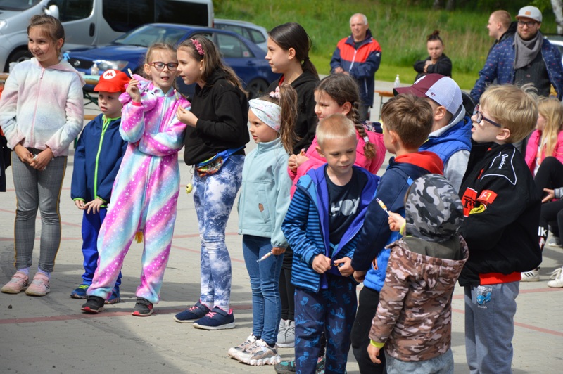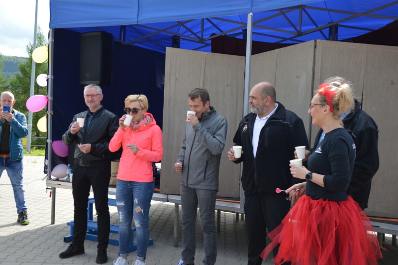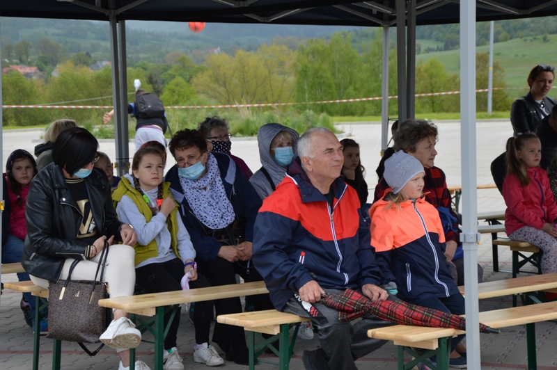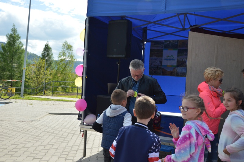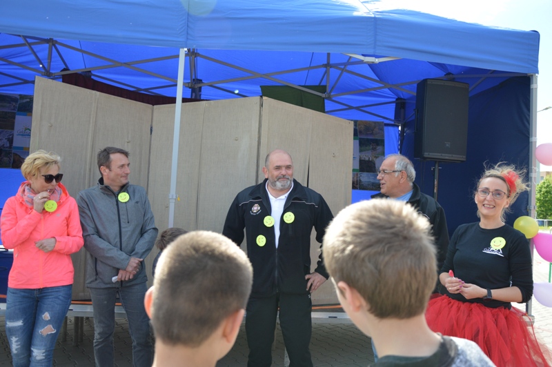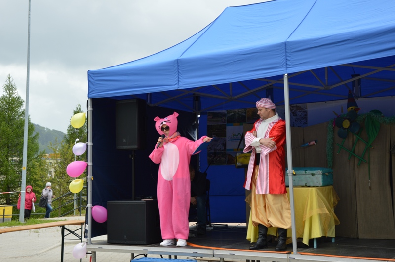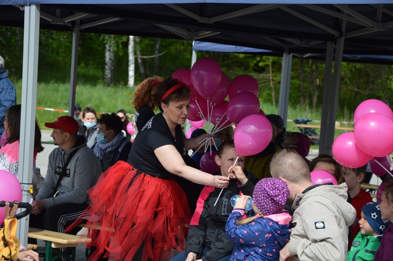 Pozytywną energię przekazywali także przybyłym pięknie przebrani pracownicy Ośrodka Pomocy Społecznej w Głuszycy, którzy w ramach prowadzonej akcji „Stop przemocy” rozdawali dzieciom różowe baloniki. Jak na Dzień Dziecka przystało najmłodsi wręczyli dorosłym ordery uśmiechu – po pozytywnie zakończonej próbie wypicia z uśmiechem soku cytrynowego. Imprezę poprowadził przebrany w strój Ali Baby zawodowy aktor Robert Delegiewicz.