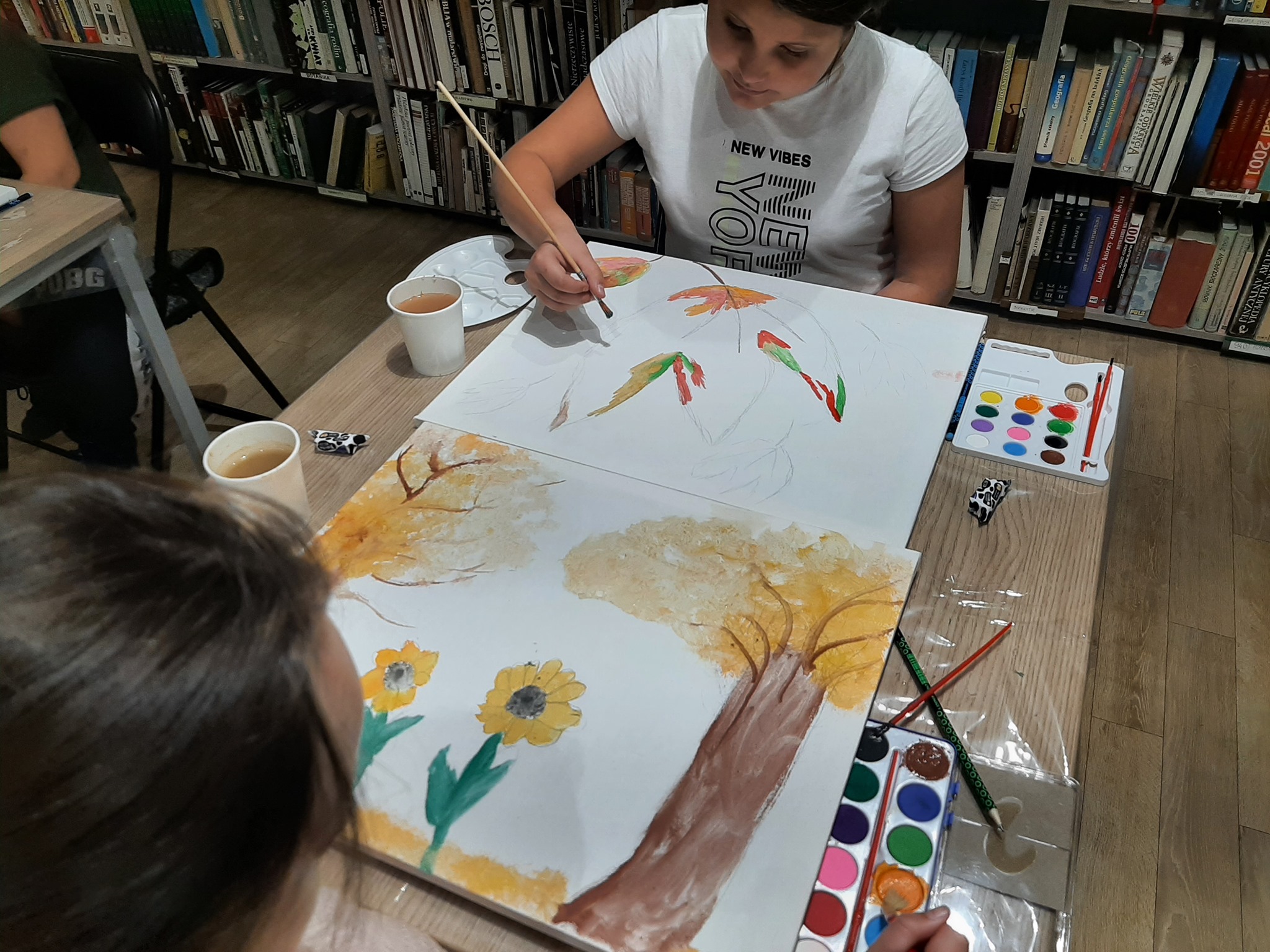 W piątkowe popołudnie 15 października w czytelni internetowej Centrum Kultury-MBP odbyły się warsztaty plastyczne dla dzieci i młodzieży. Pod okiem artysty malarza Pana Ryszarda Berczyńskiego uczestnicy zajęć poznawali tajniki sztuki malarskiej. Swoje malarskie impresje przelewali na płótna z użyciem farb wodnych. Tematem przewodnim warsztatu były barwy jesieni. W miłej i twórczej atmosferze powstały piękne prace plastyczne.