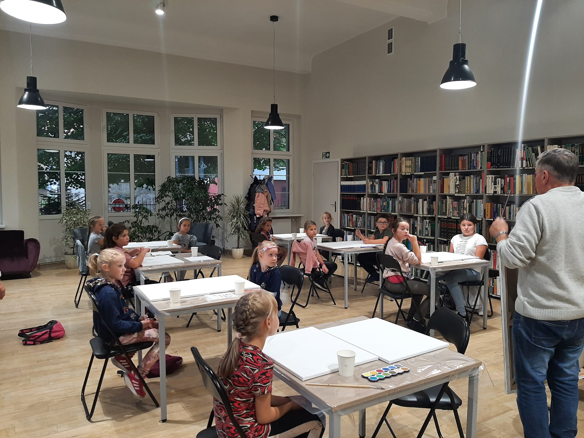 Serdecznie dziękujemy młodym uczestnikom warsztatów plastycznych. Szczególne podziękowania dla prowadzącego zajęcia – Pana Ryszarda Berczyńskiego, naszego głuszyckiego twórcy. Przypominamy, że obrazy Pana Ryszarda zobaczyć można w mini galerii Urzędu Miejskiego w Głuszycy oraz w wypożyczalni Miejskiej Biblioteki Publicznej w Głuszycy.