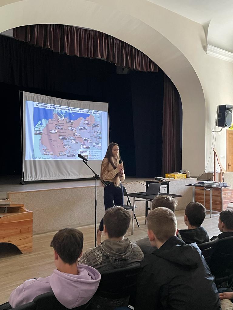 Przybyłych do głuszyckiego Centrum Kultury powitali Burmistrz Głuszycy Roman Głód oraz Prezes Podziemnego Miasta Osówki Zdzisław Łazanowski. Ciekawą lekcję muzealną dla młodzieży szkolnej poprowadziła Dominika Pacułt z Muzeum Gross-Rosen, a następnie wykład historyczny dla młodzieży szkolnej wygłosiła dr hab. Dorota Sula.