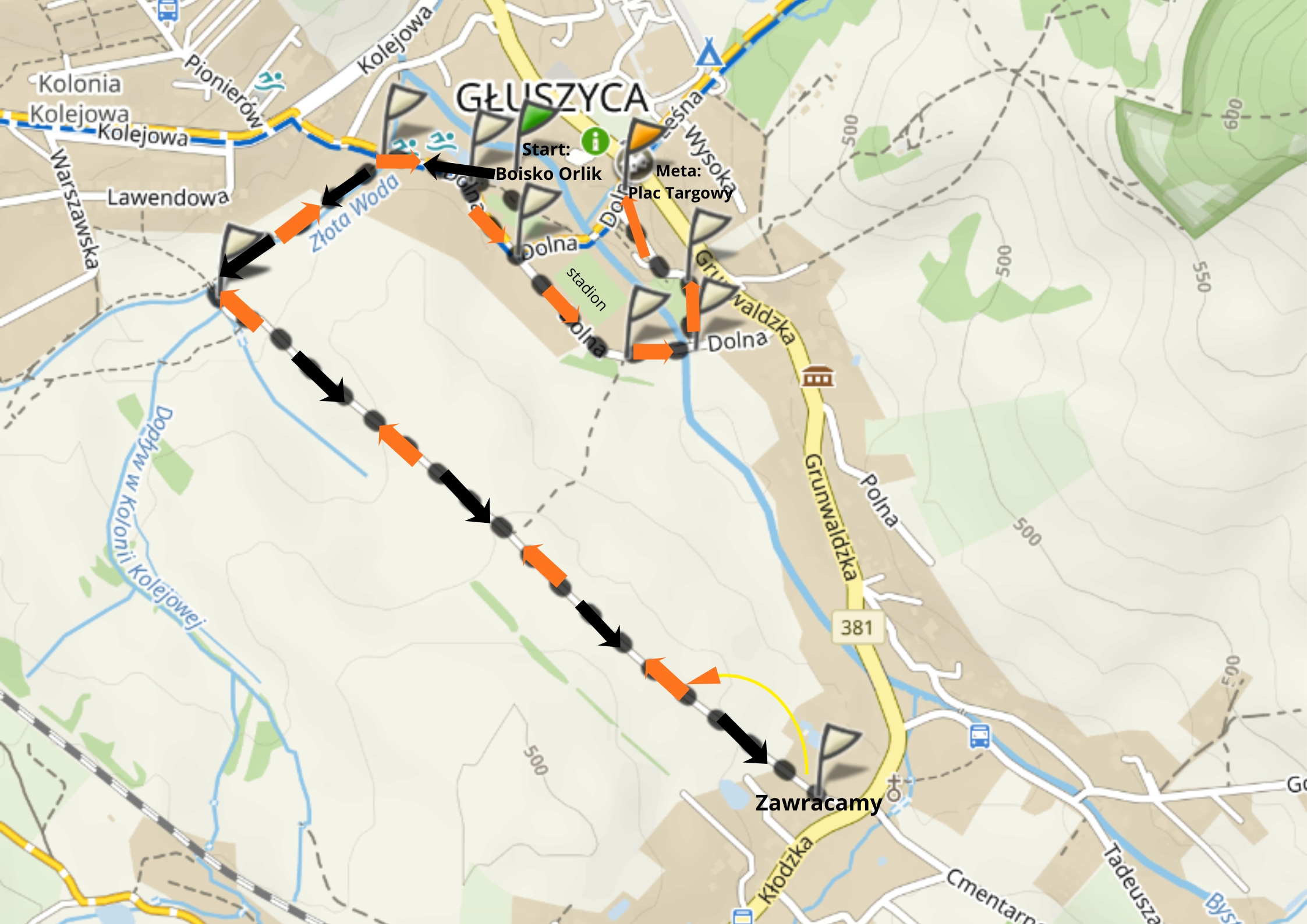 Startujemy o godz. 12:00 z Boiska Orlik w Głuszycy (ul. Dolna) przez punkt widokowy na Głuszycę, meta na Placu Targowym (ul. Dolna)